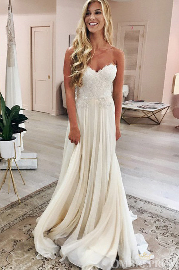 Chic Sweetheart Lace A Line Floor Length Long Wedding Dresses