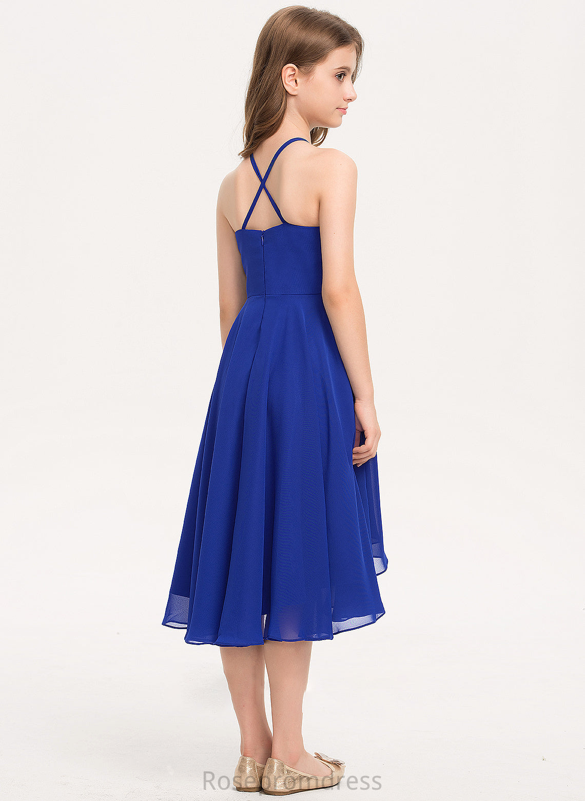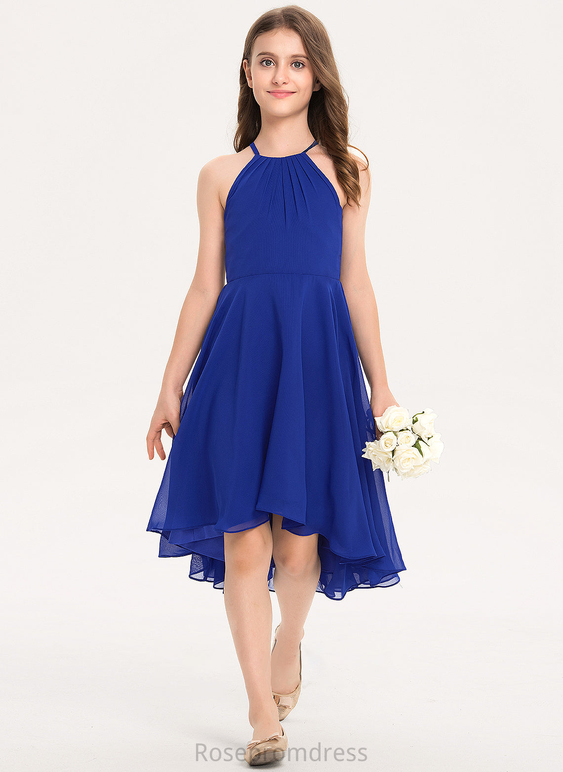 Chiffon Alyvia Asymmetrical Scoop A-Line Neck Junior Bridesmaid Dresses With Ruffle