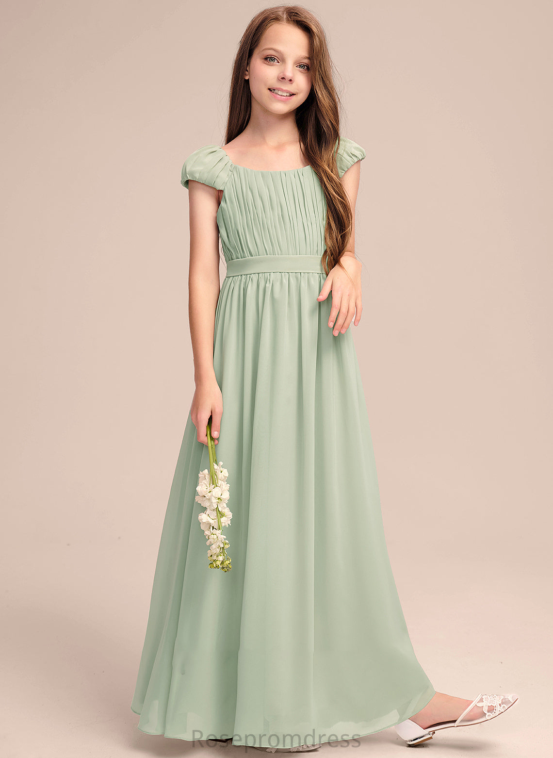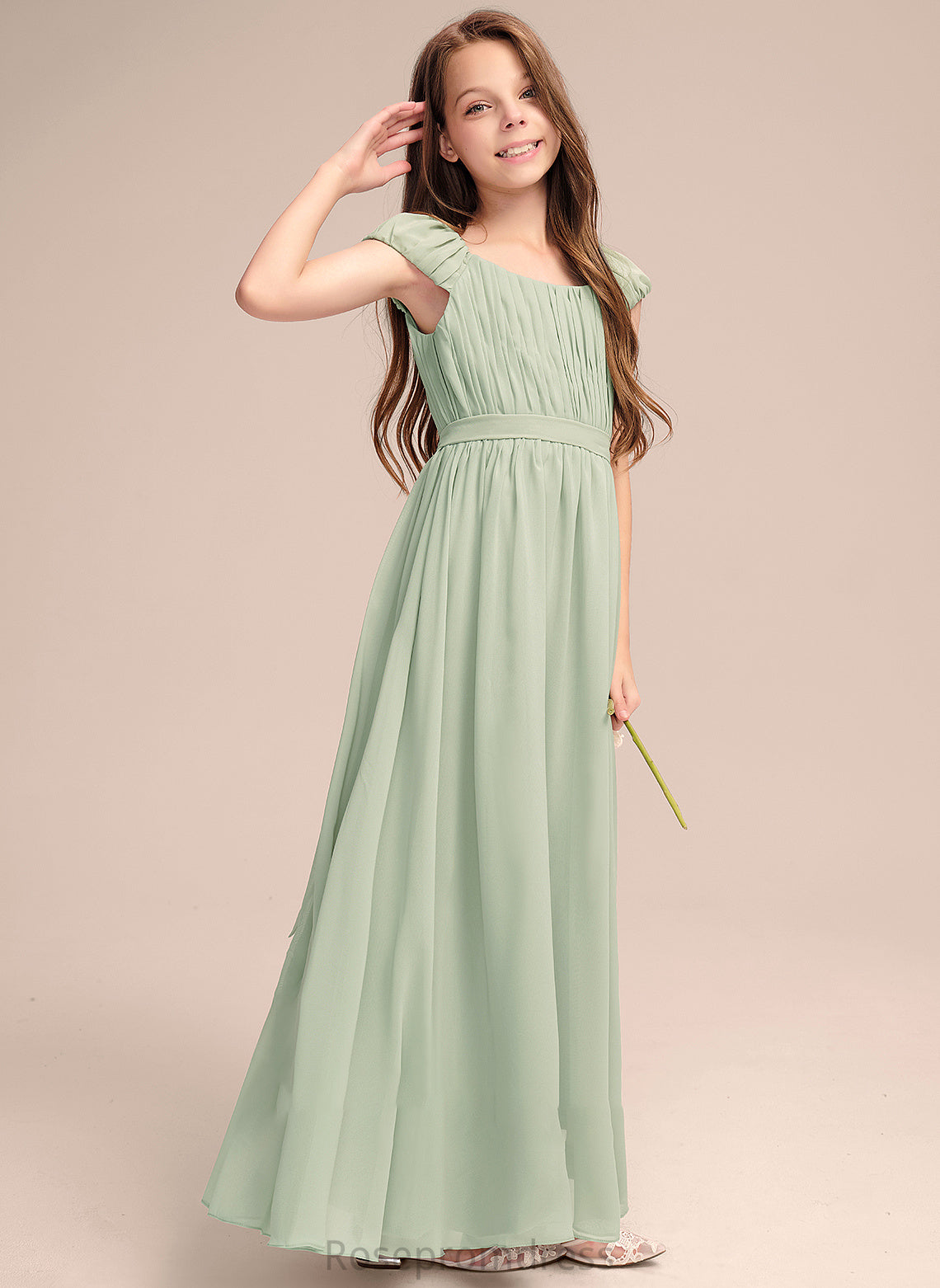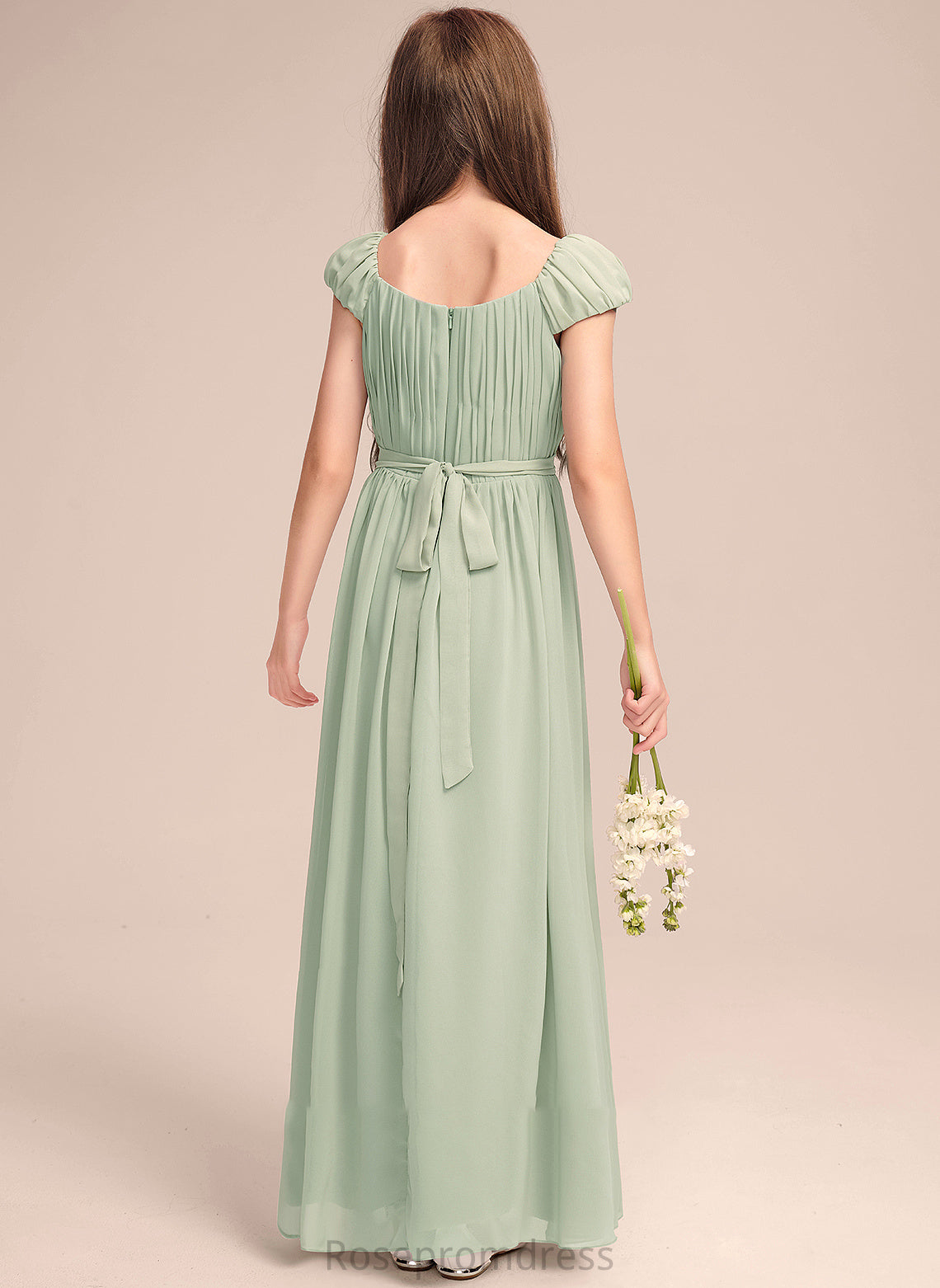 Chiffon Bow(s) Scoop With A-Line Floor-Length Ruffle Neck Journey Junior Bridesmaid Dresses