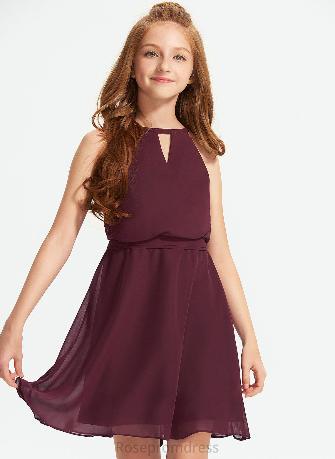 Chiffon Cadence Knee-Length Scoop Neck Bow(s) A-Line Junior Bridesmaid Dresses With
