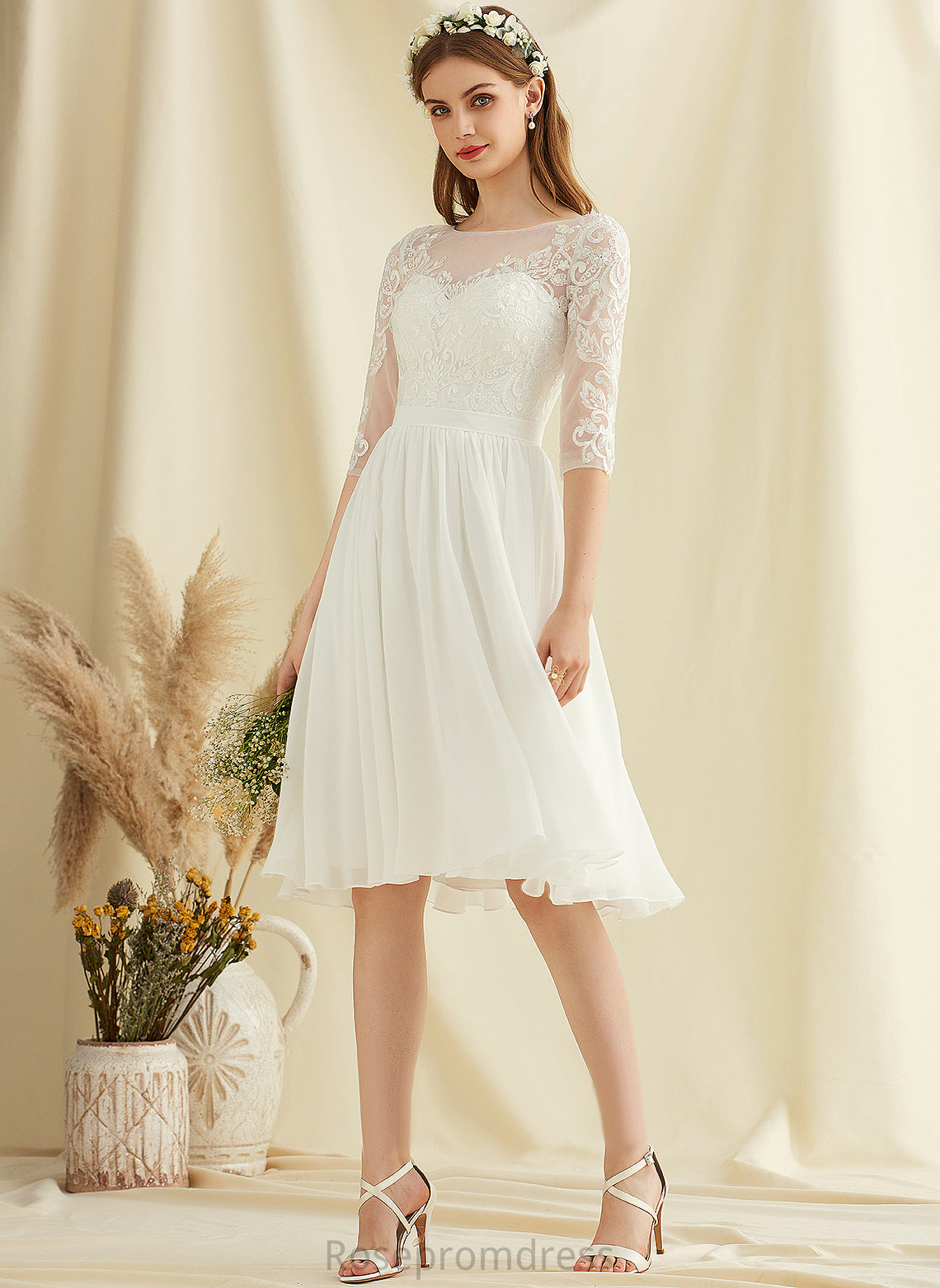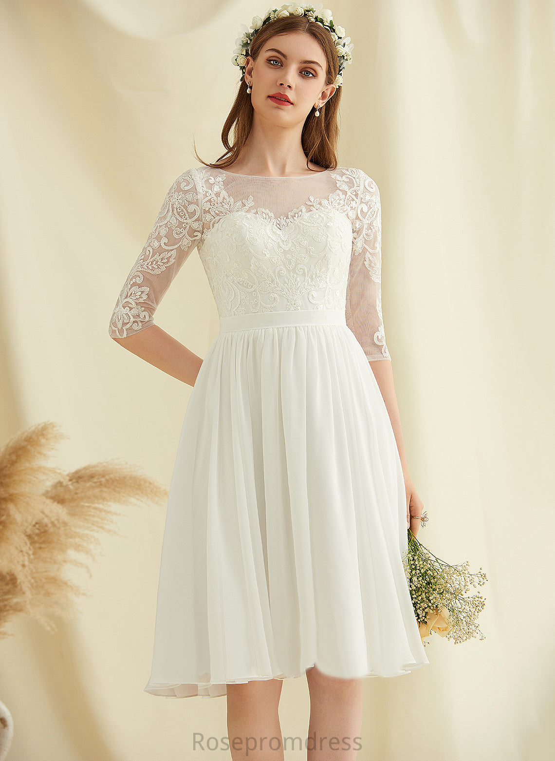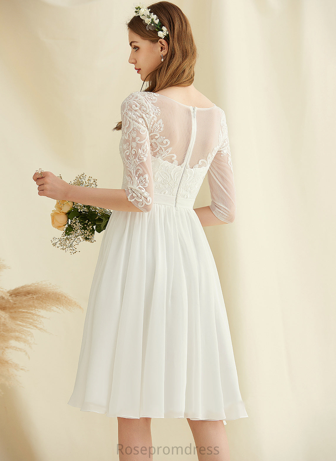 Chiffon Dress Scoop With Lace Neck Wedding Wedding Dresses Knee-Length Fernanda A-Line Sequins
