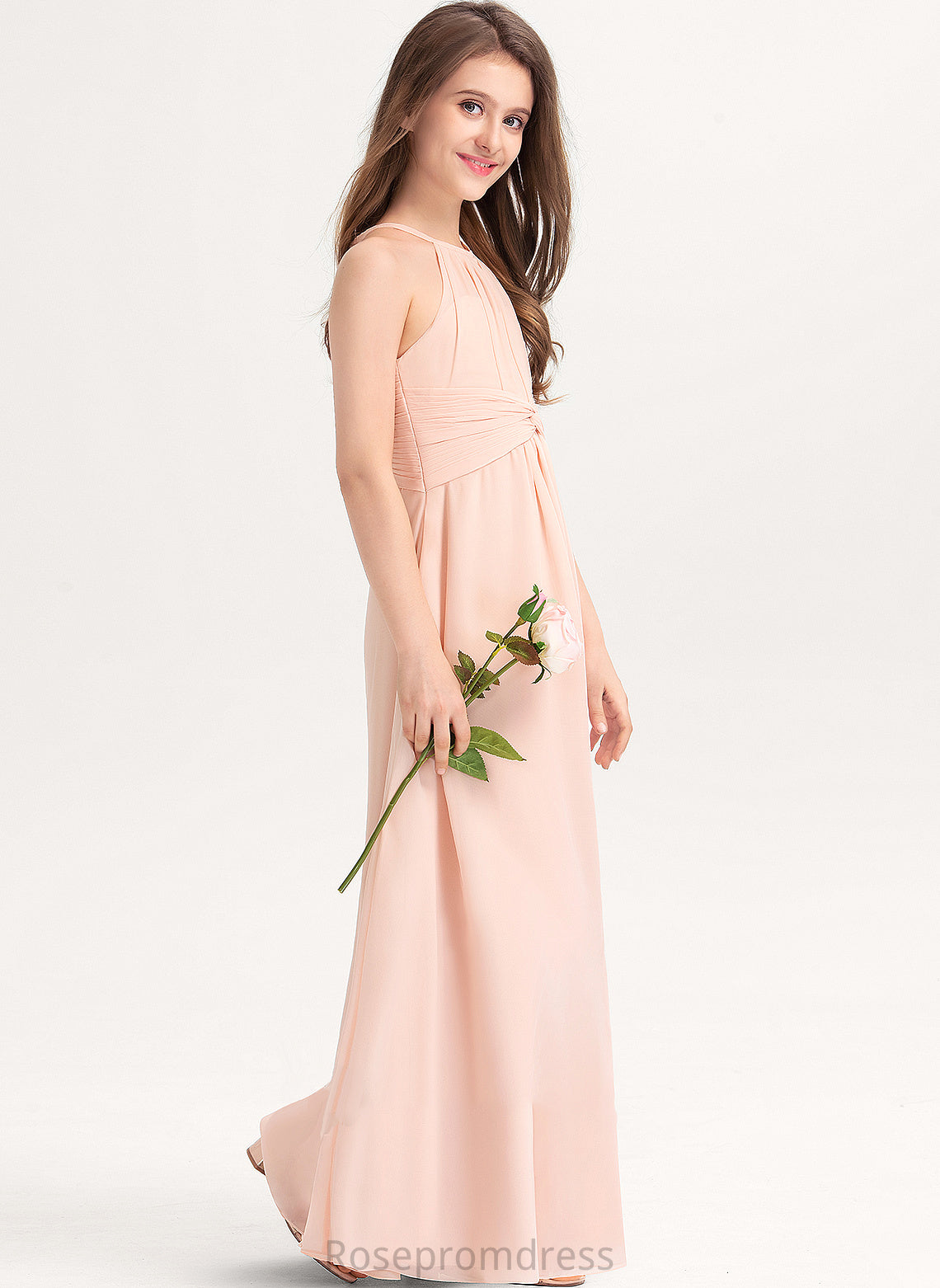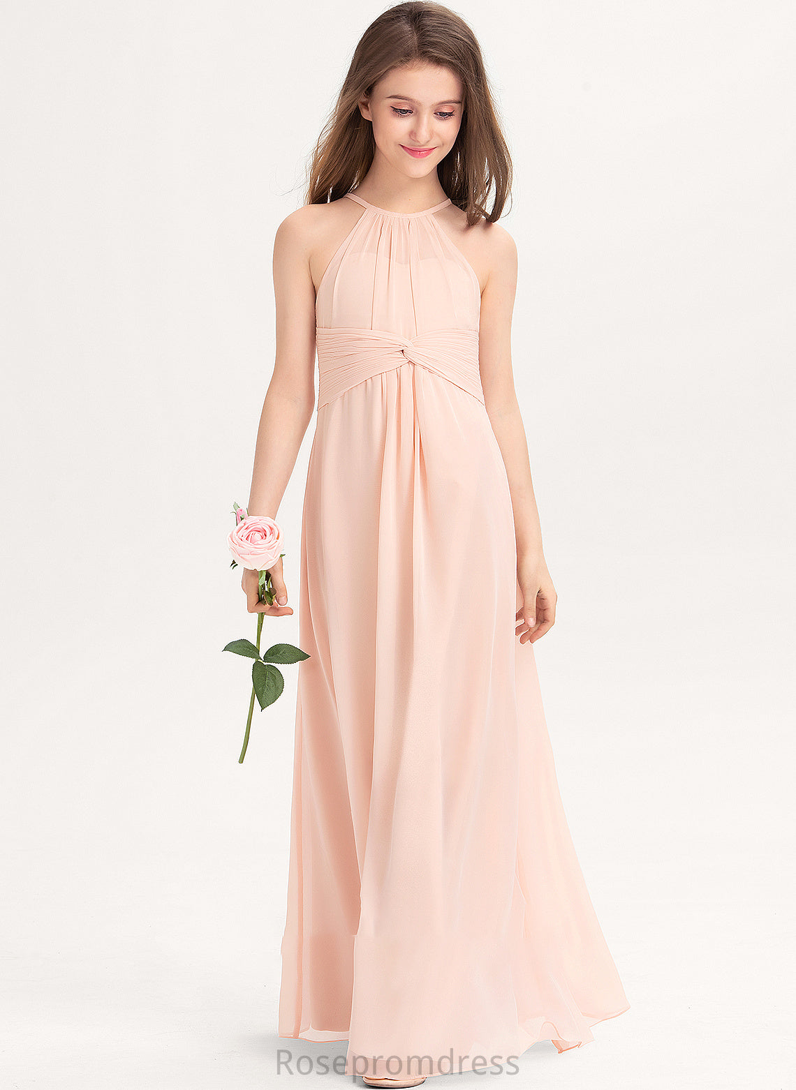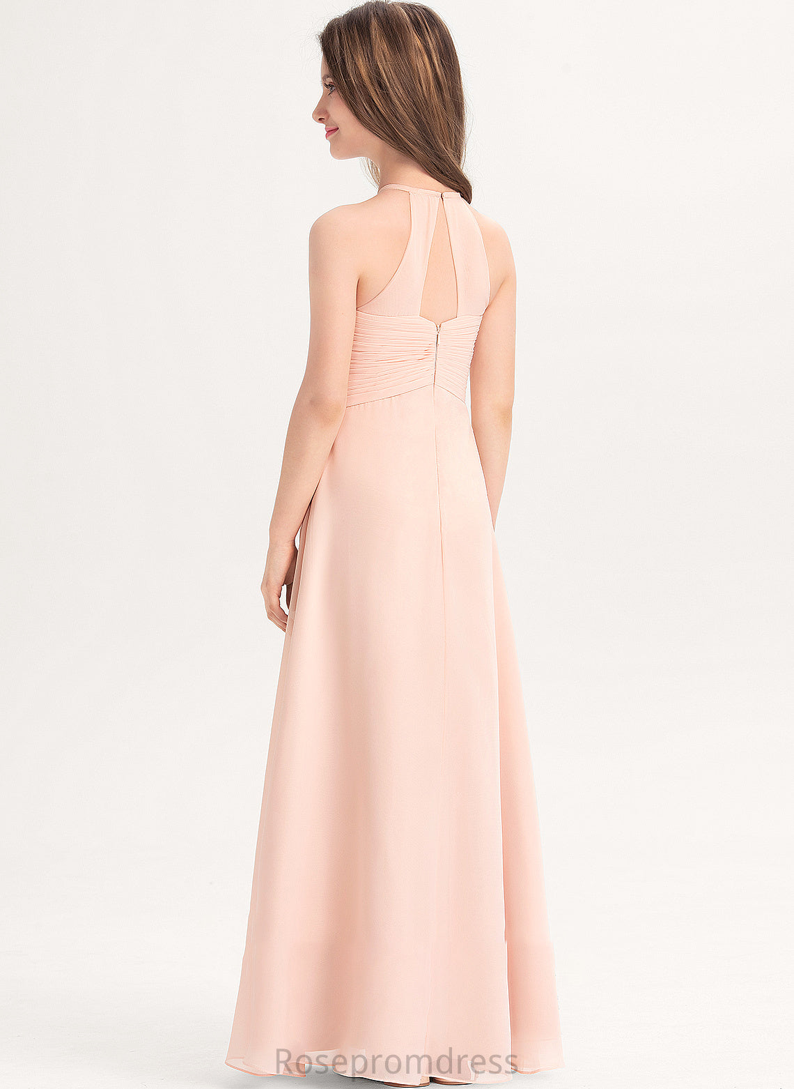 Chiffon Izabelle Ruffle Floor-Length With Neck A-Line Junior Bridesmaid Dresses Scoop