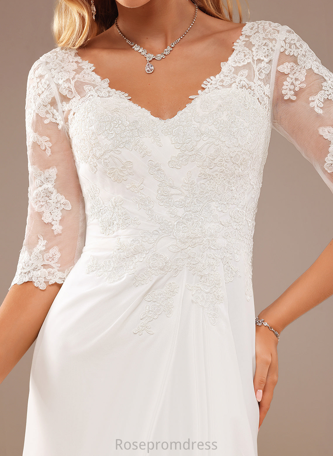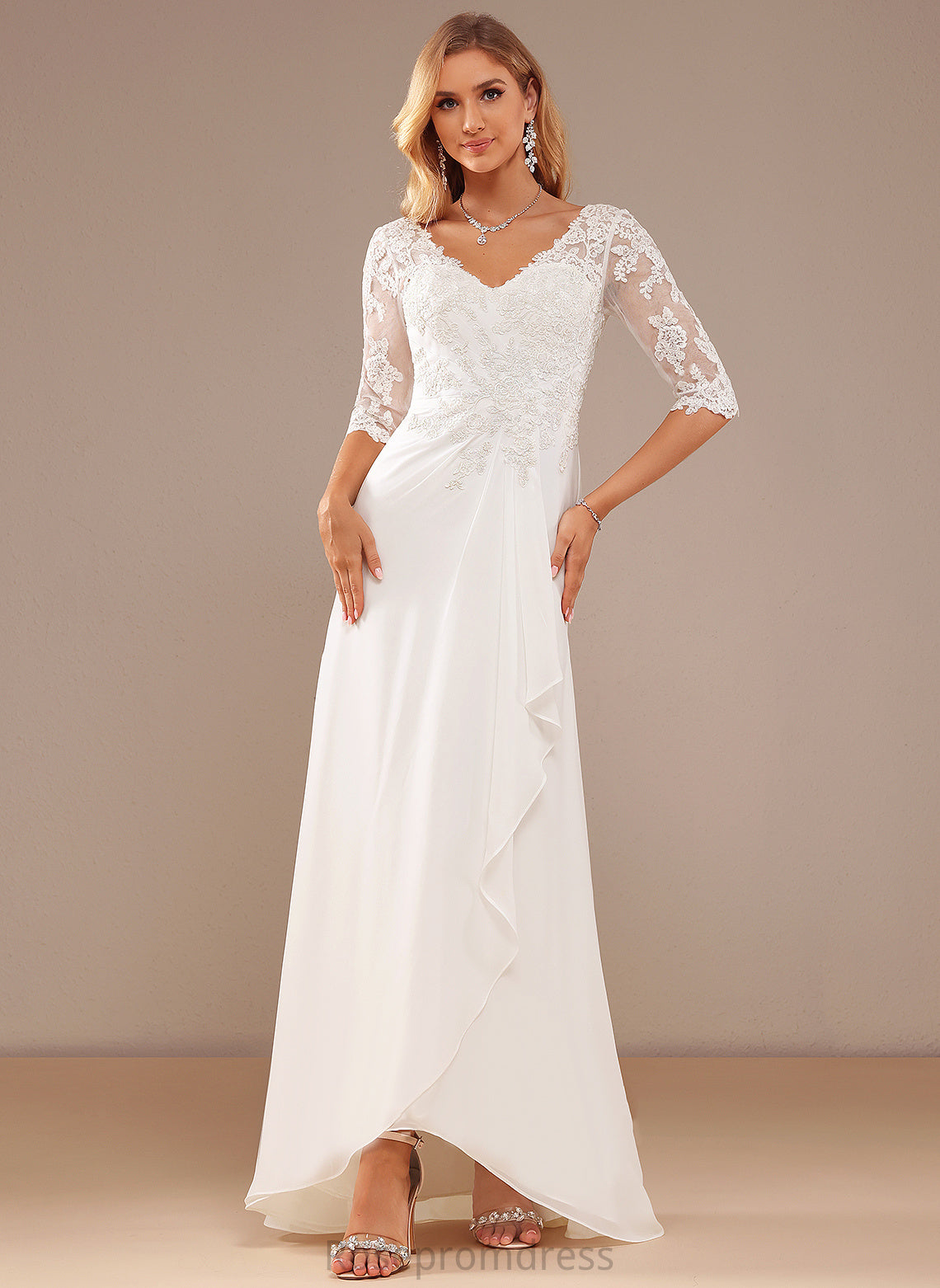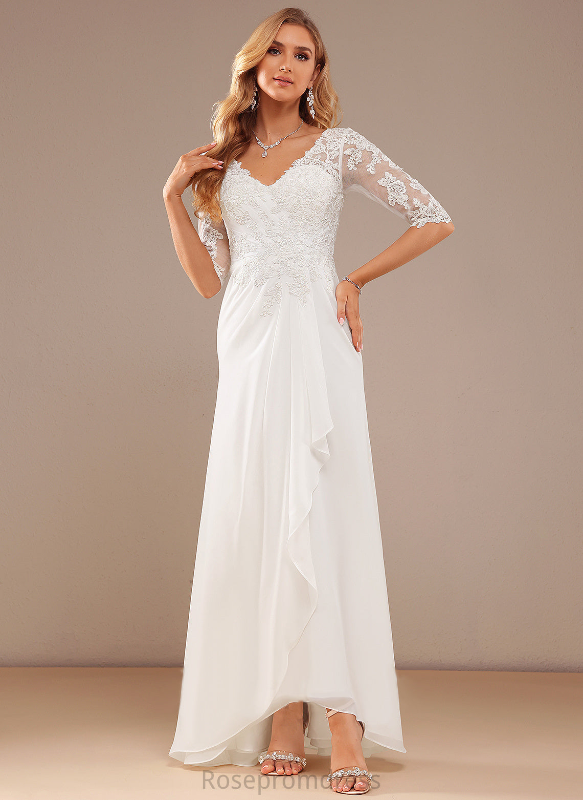 Chiffon Jamiya A-Line Asymmetrical With Ruffle Wedding V-neck Lace Wedding Dresses Dress