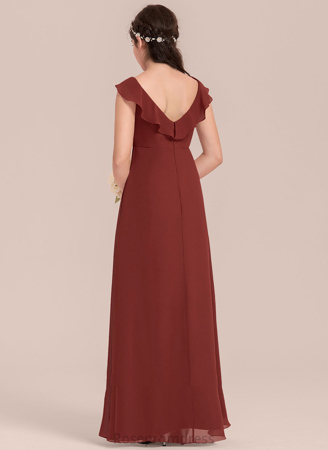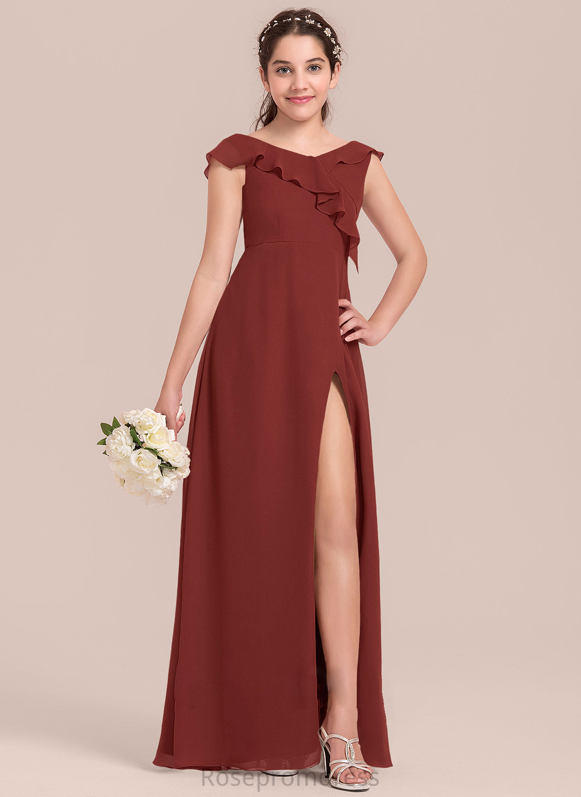 Chiffon Junior Bridesmaid Dresses With Gia Cascading Floor-Length Ruffles V-neck A-Line Split Front