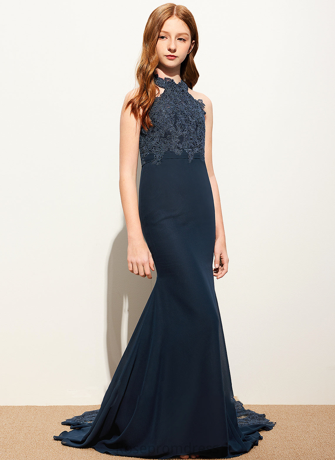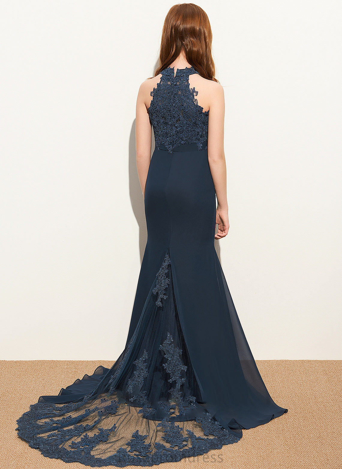 Chiffon Lace Scoop Sweep Junior Bridesmaid Dresses Neck Maryjane Train Trumpet/Mermaid