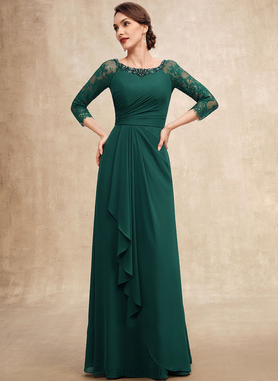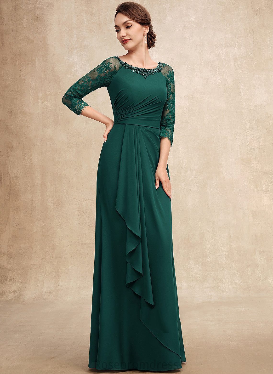 Chiffon Mother of the Bride Dresses Mother Floor-Length Dress of Ruffles Scoop Bride Neck Lucile Lace Beading Cascading A-Line the With