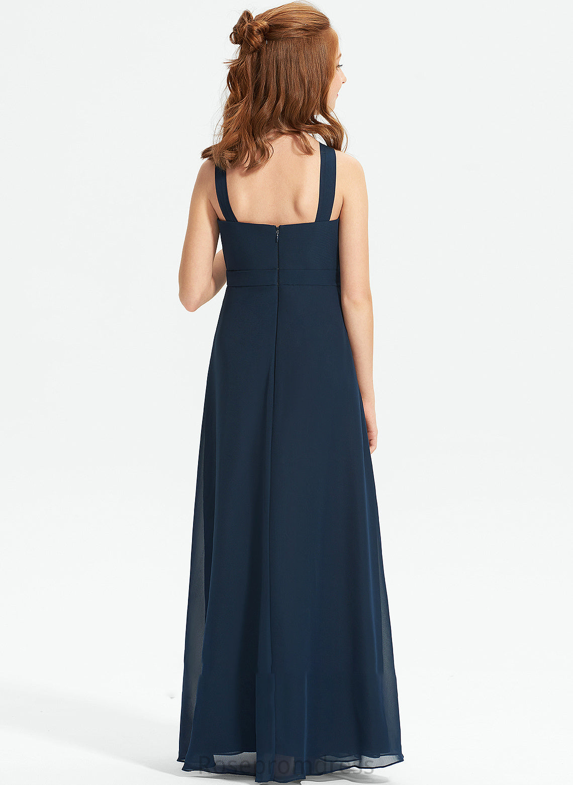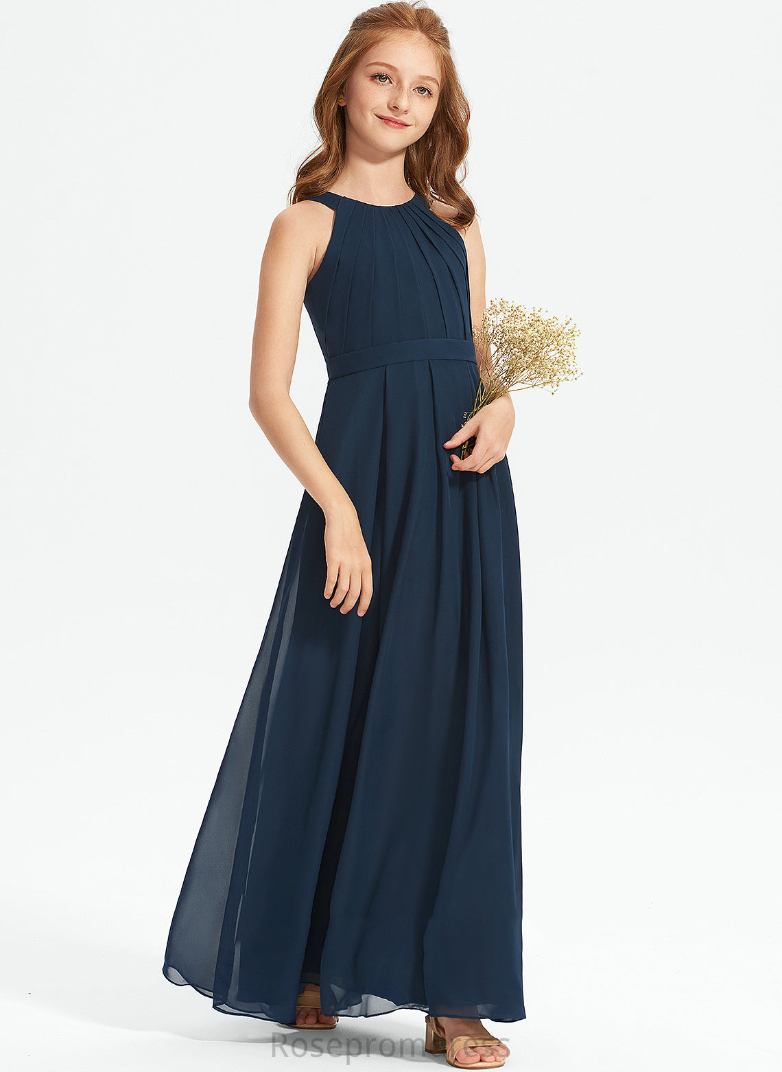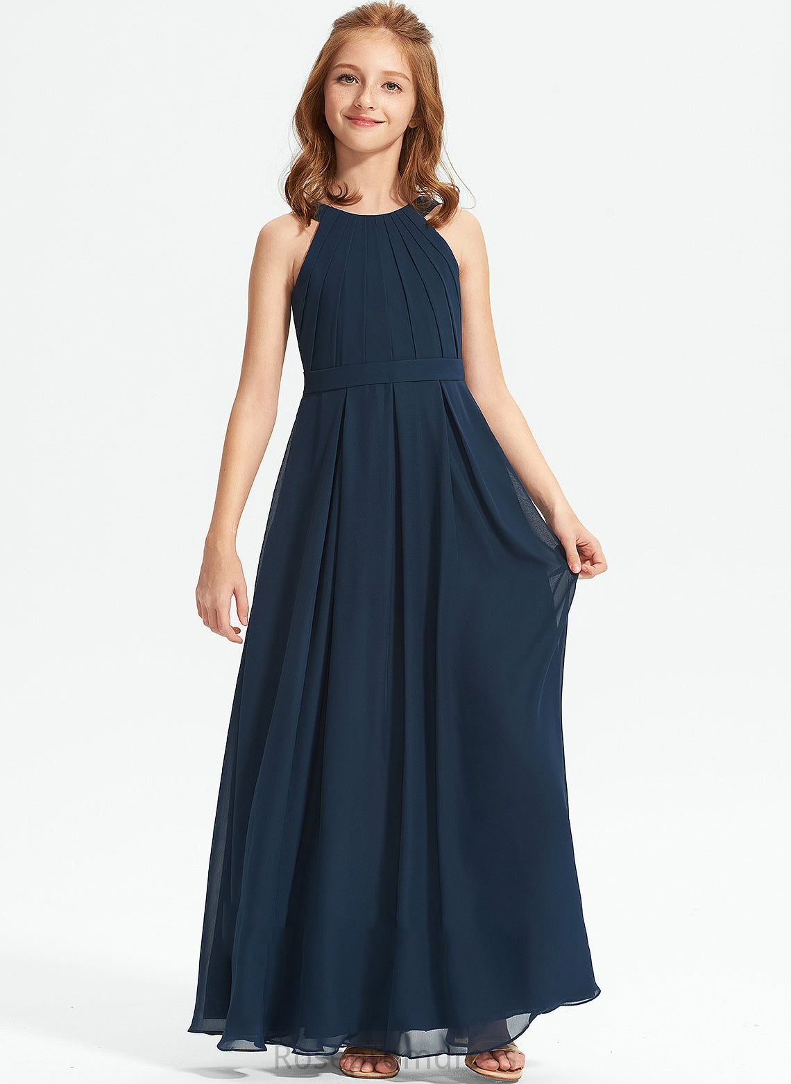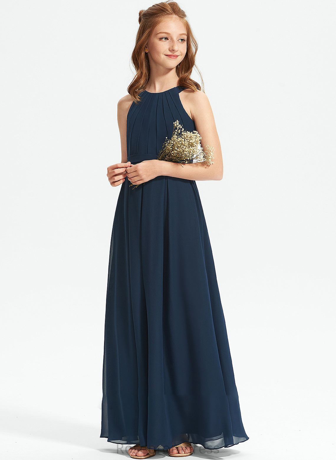 Chiffon Ruffle A-Line Junior Bridesmaid Dresses Scoop Neck Lindsay Floor-Length With