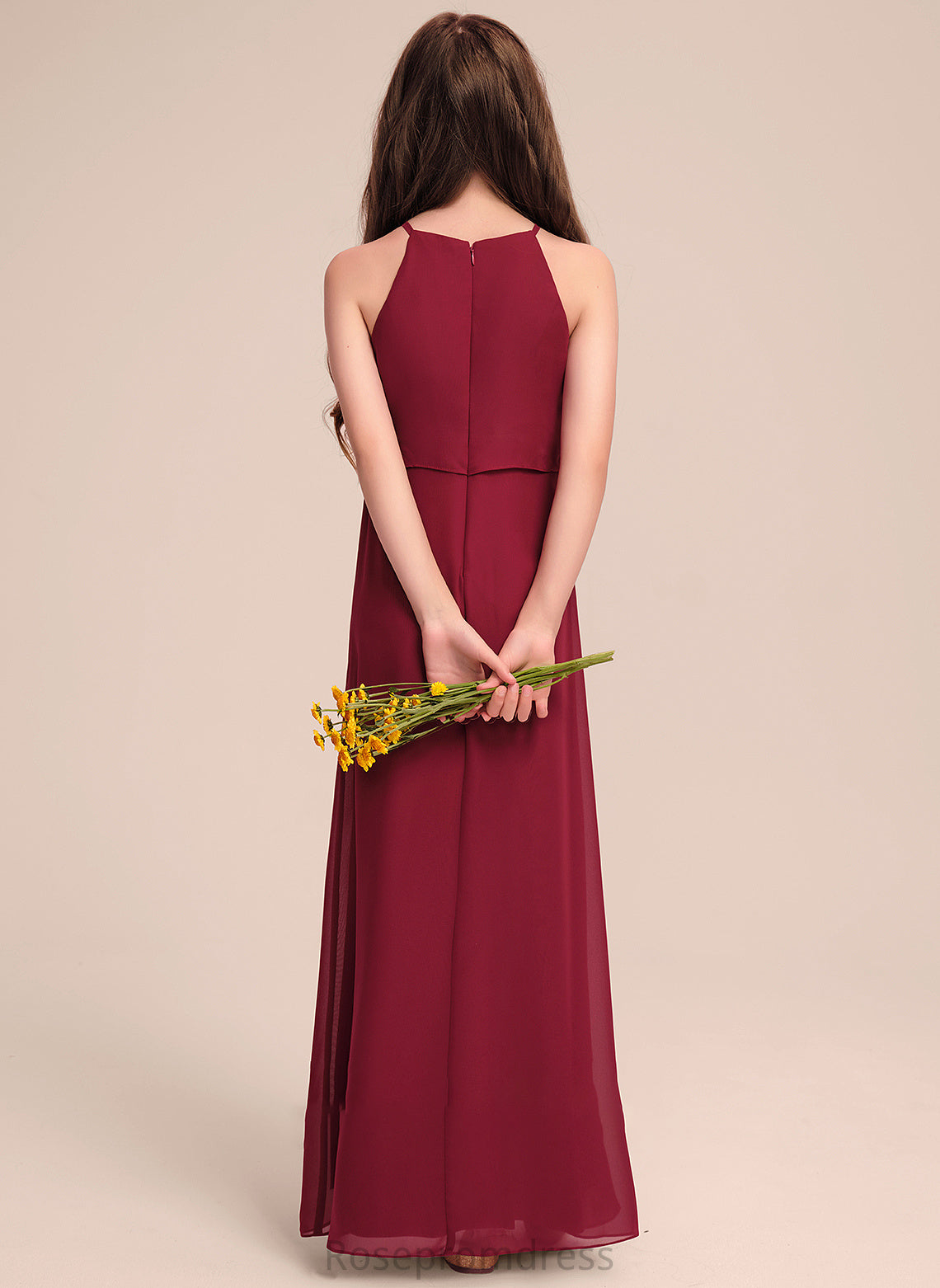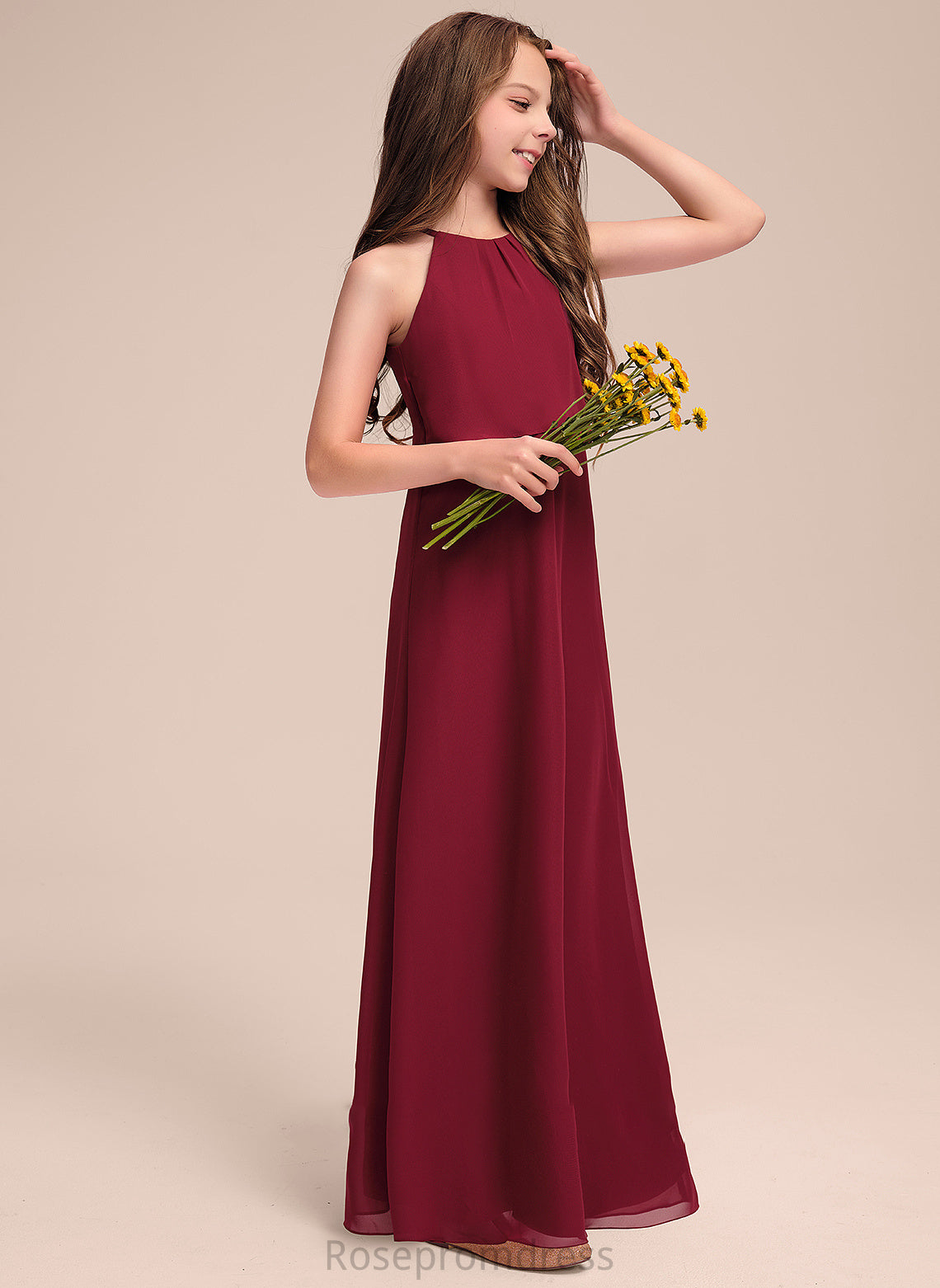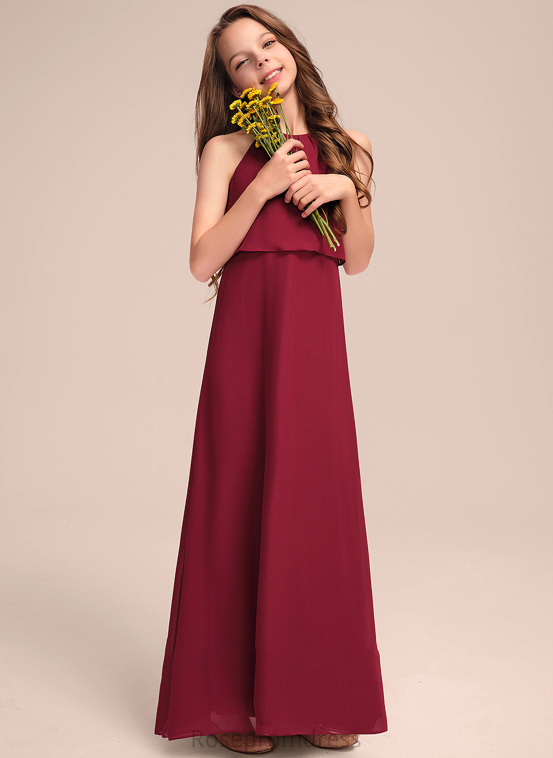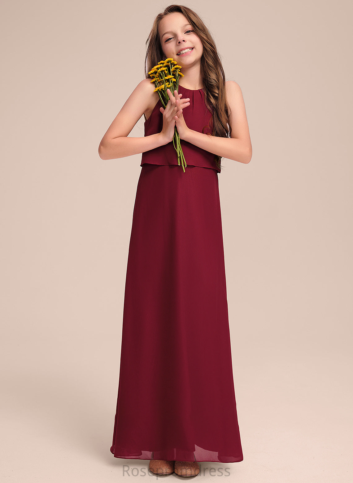 Chiffon Scoop A-Line Ruffles Floor-Length Kaydence Junior Bridesmaid Dresses With Neck