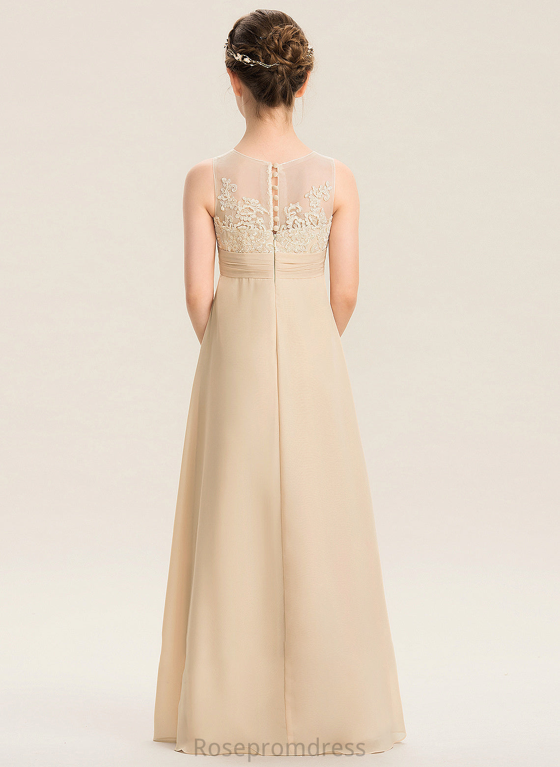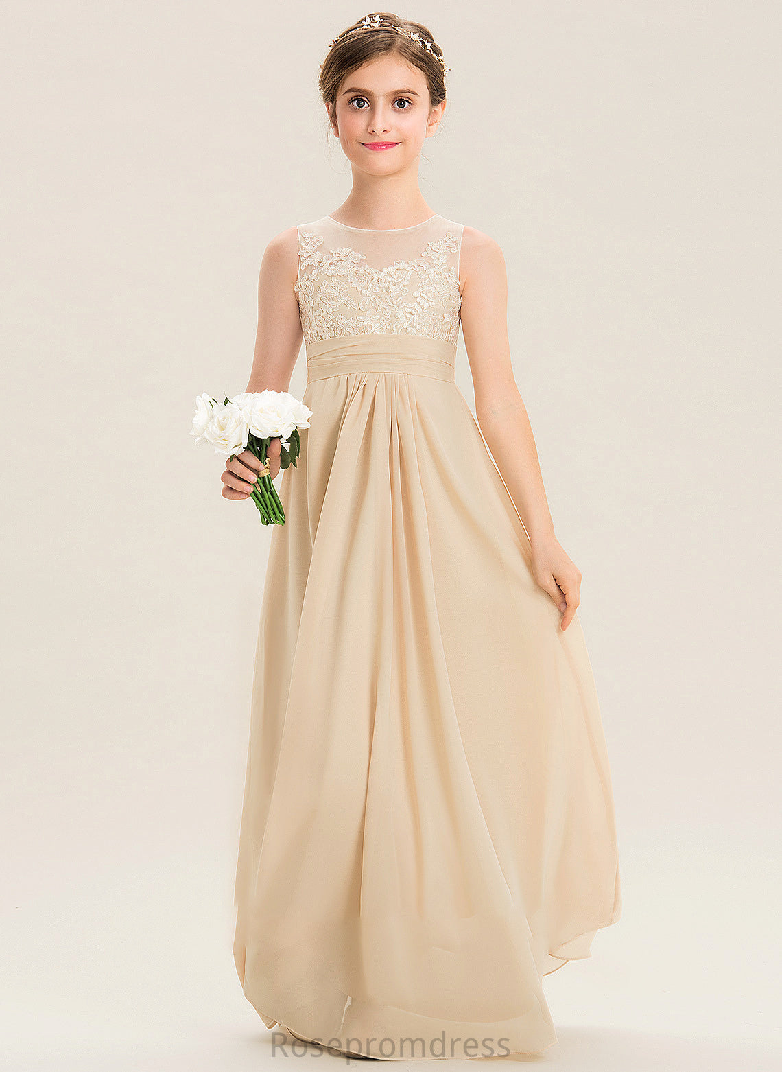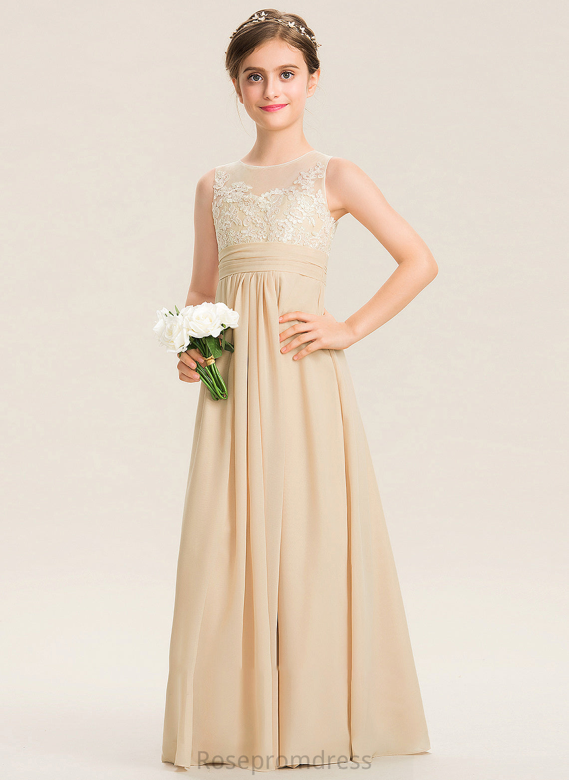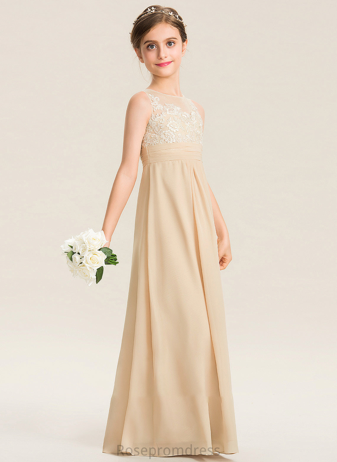 Chiffon Scoop Neck Alice Lace Floor-Length Junior Bridesmaid Dresses A-Line