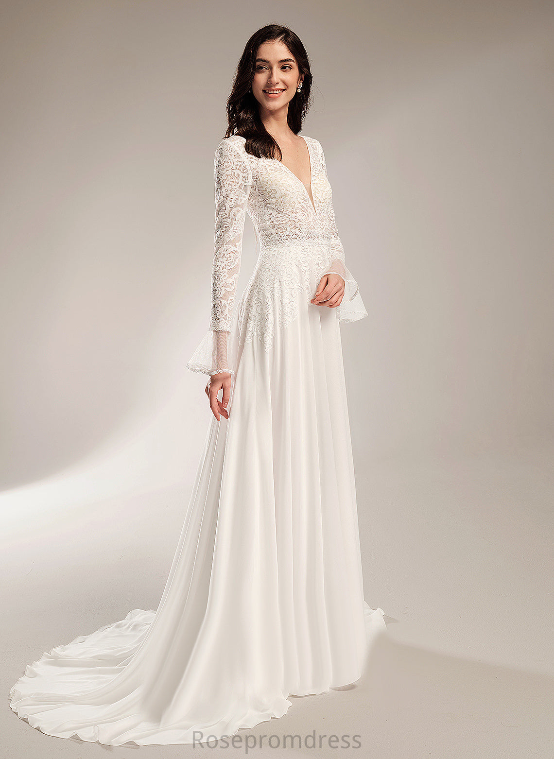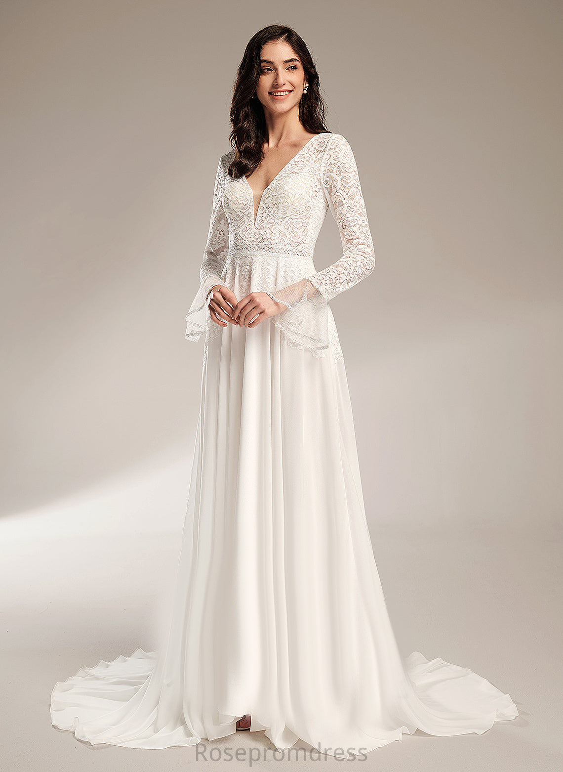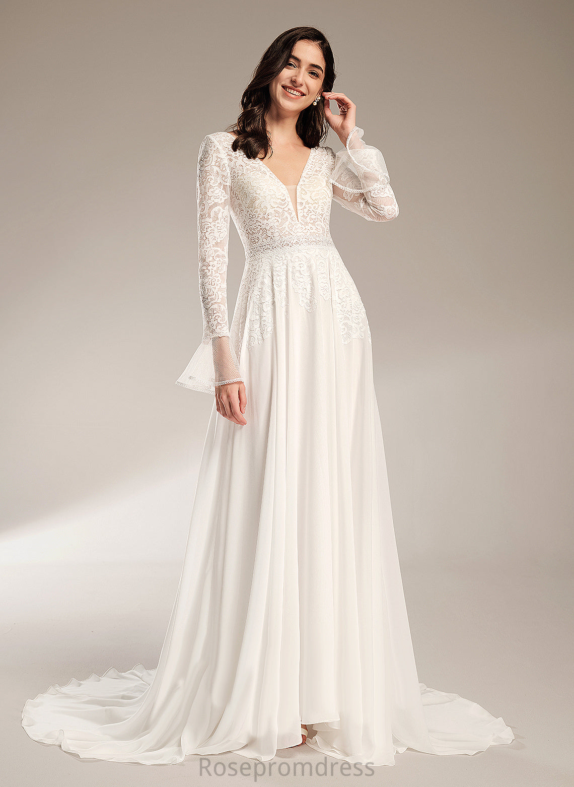 Chiffon Wedding Dresses Wedding Ruffle Court V-neck With Dress Ayla Lace Train A-Line