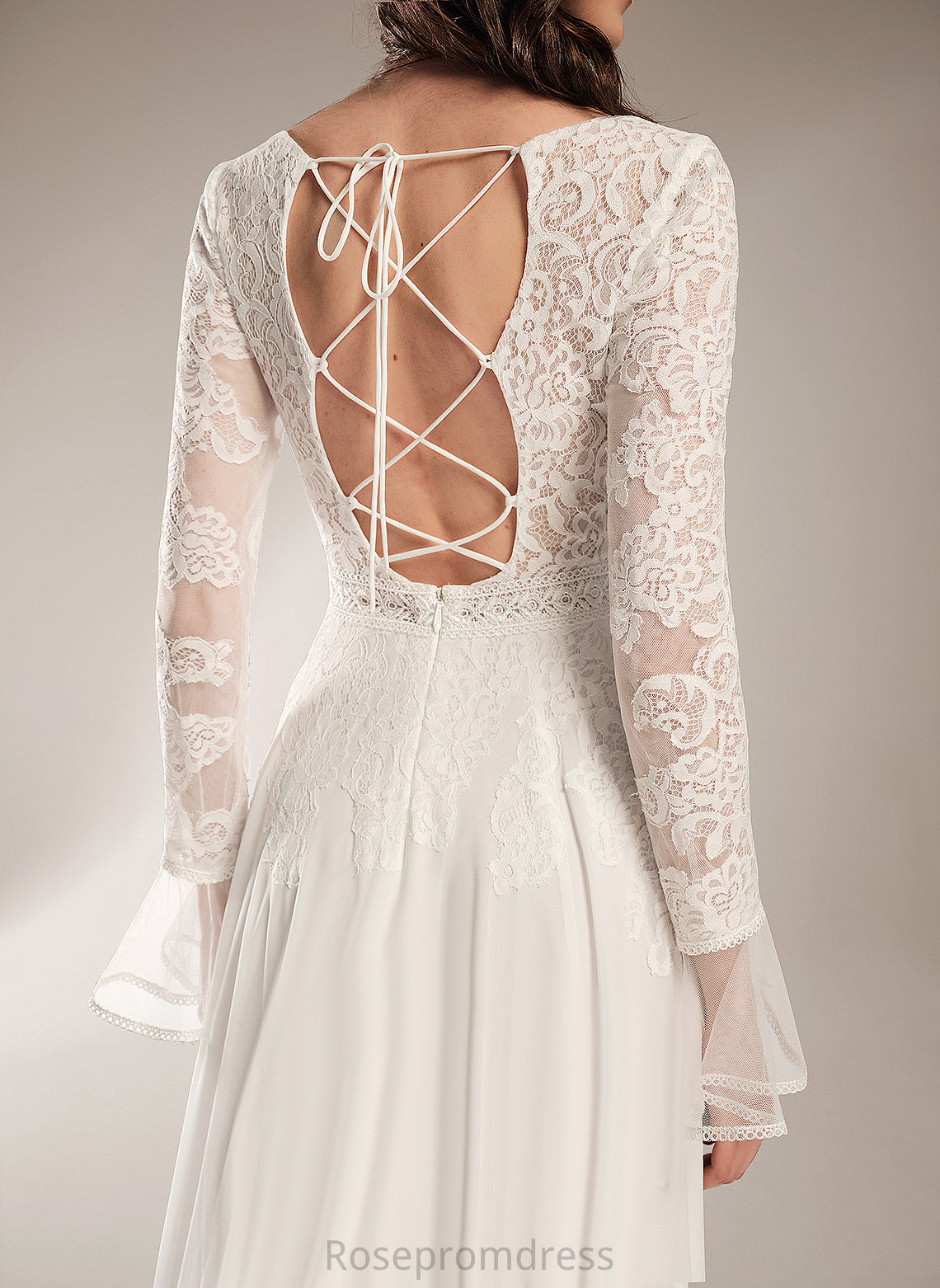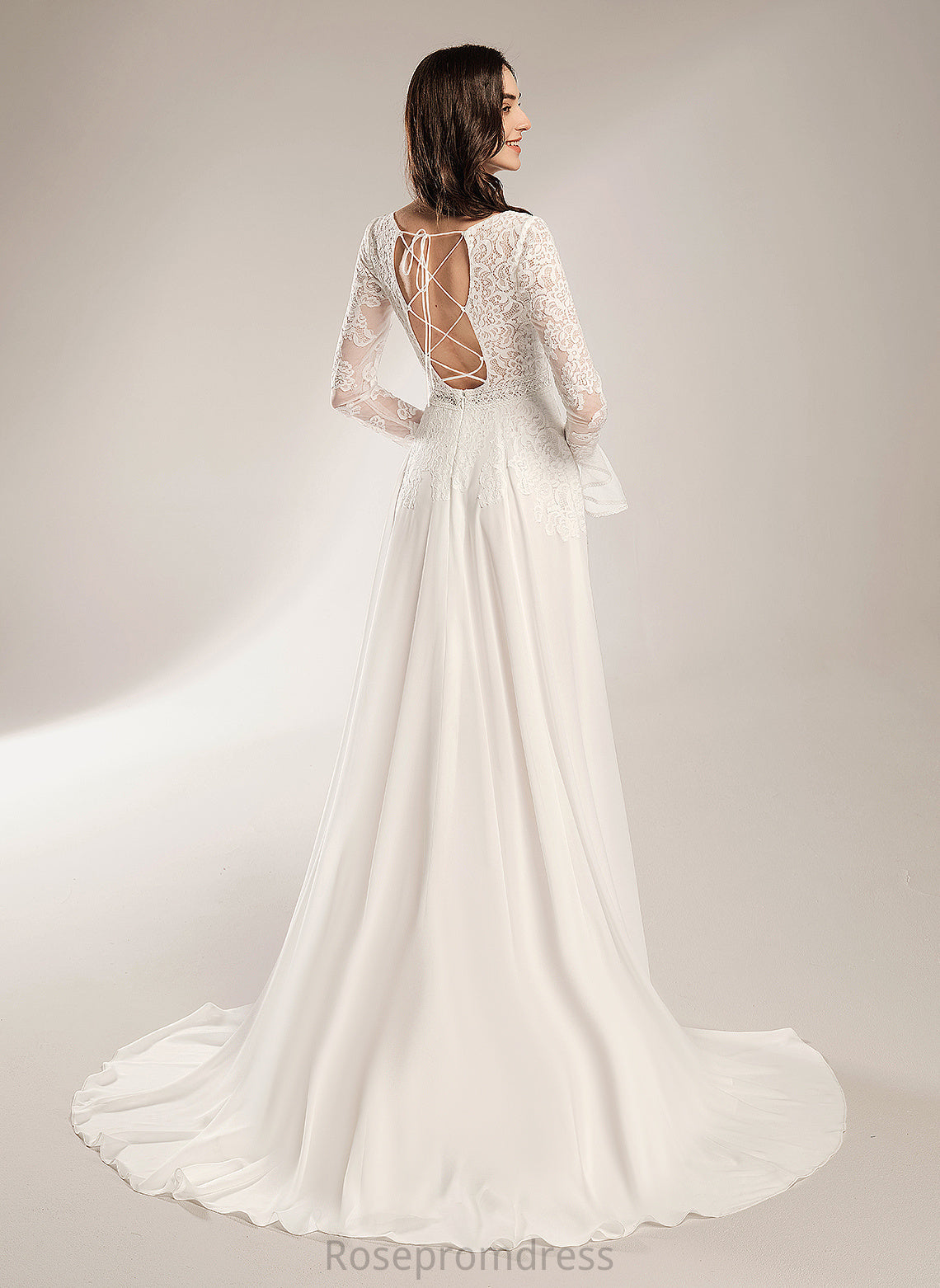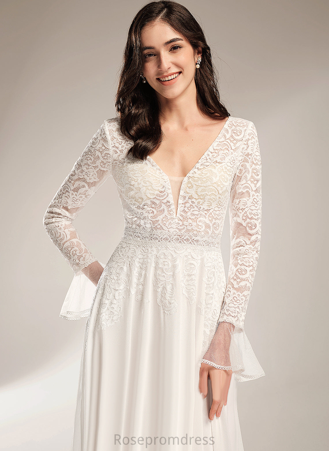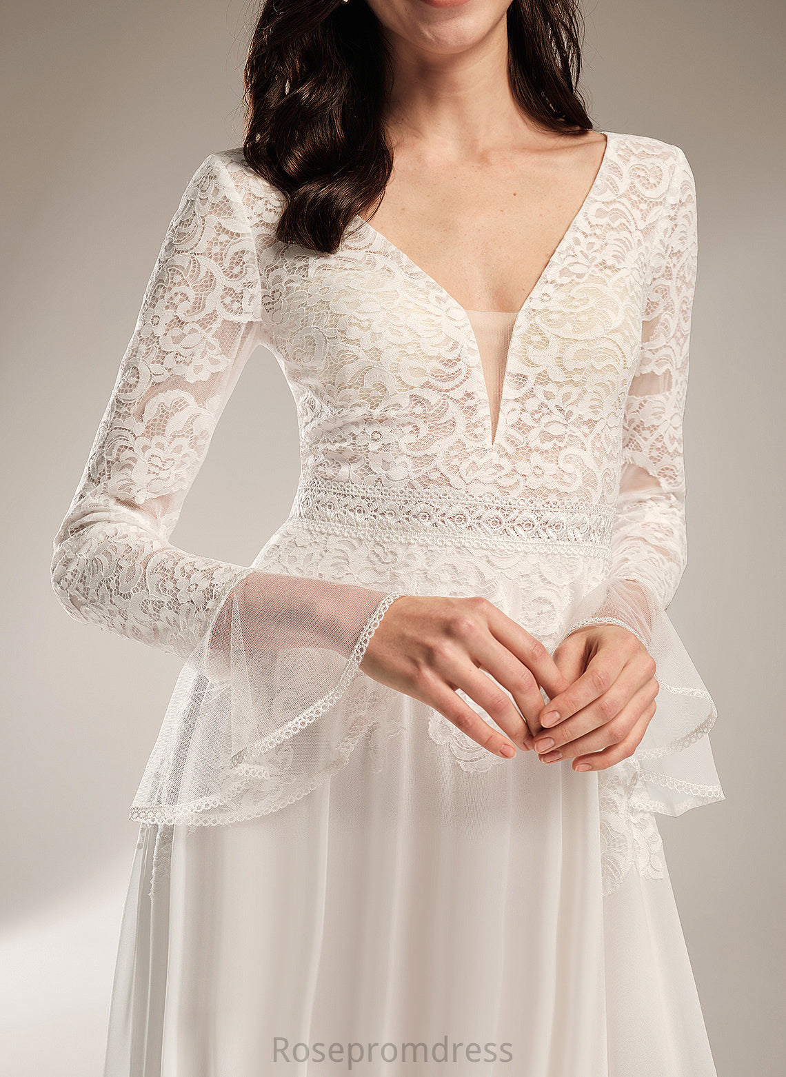Chiffon Wedding Dresses Wedding Ruffle Court V-neck With Dress Ayla Lace Train A-Line