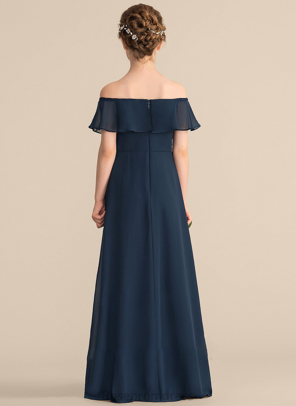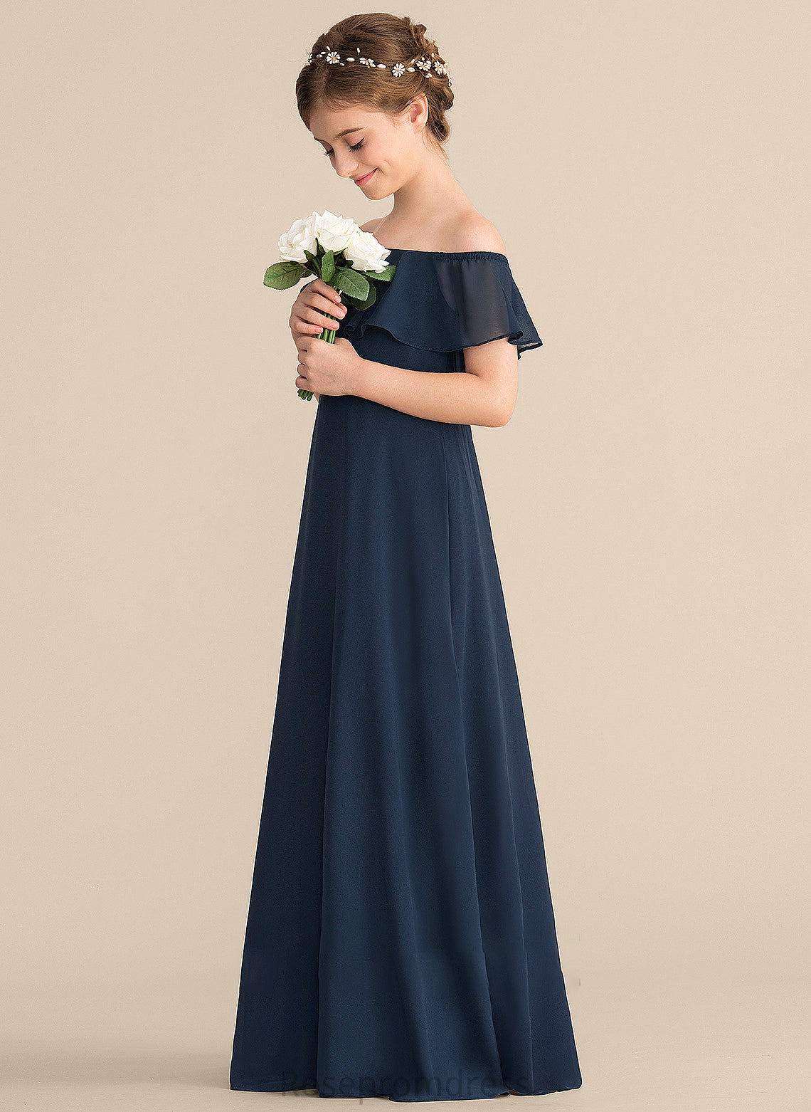 Chiffon With Cascading A-Line Ruffles Junior Bridesmaid Dresses Arely Floor-Length Off-the-Shoulder