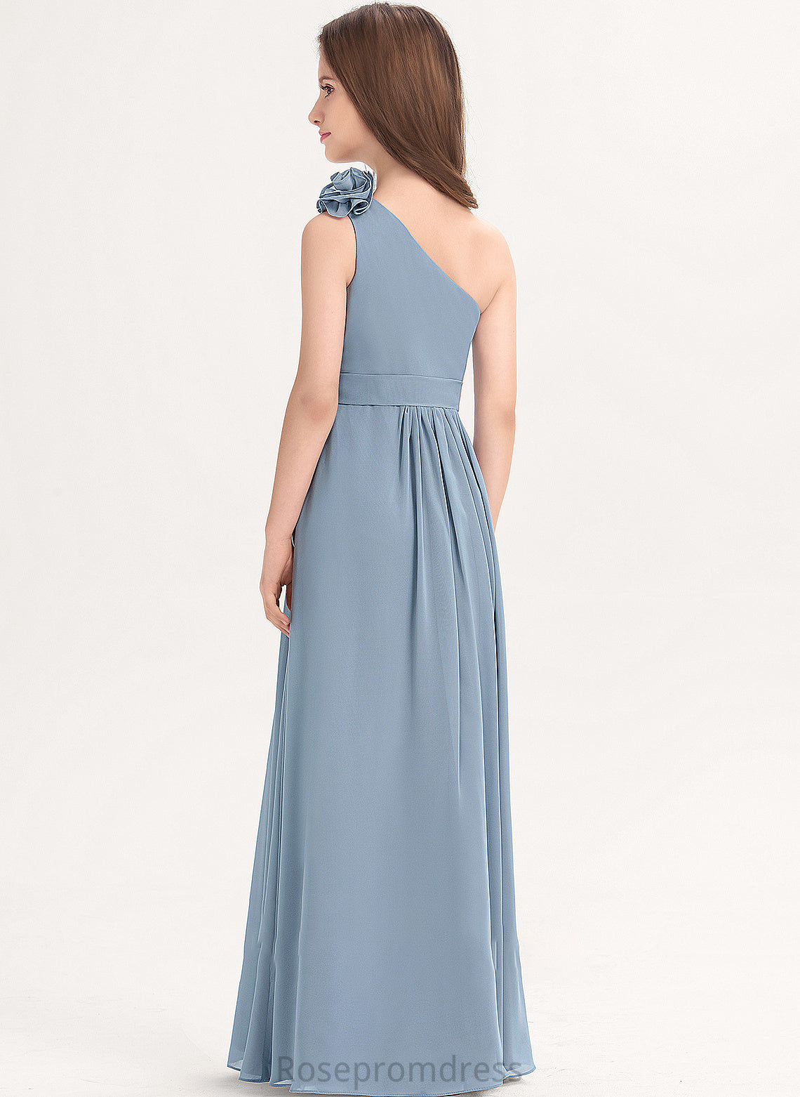 Chiffon With Floor-Length A-Line Sandra Ruffle One-Shoulder Junior Bridesmaid Dresses Flower(s)