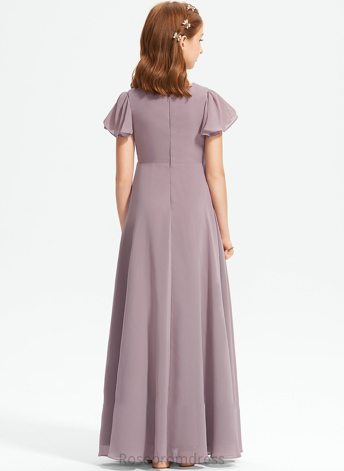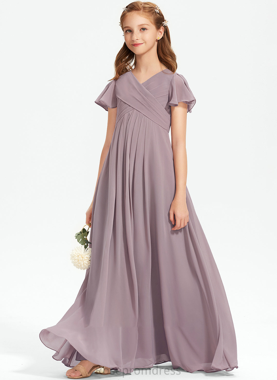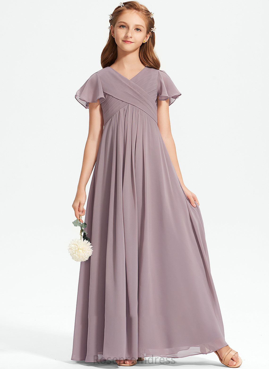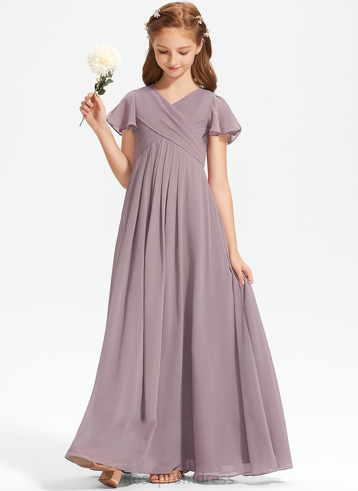 Chiffon With Junior Bridesmaid Dresses Ruffle Tanya Floor-Length A-Line V-neck