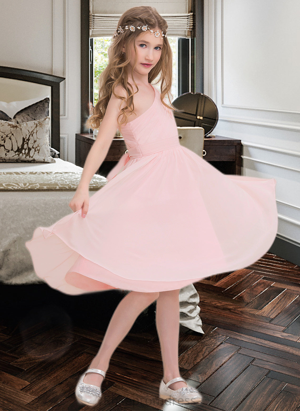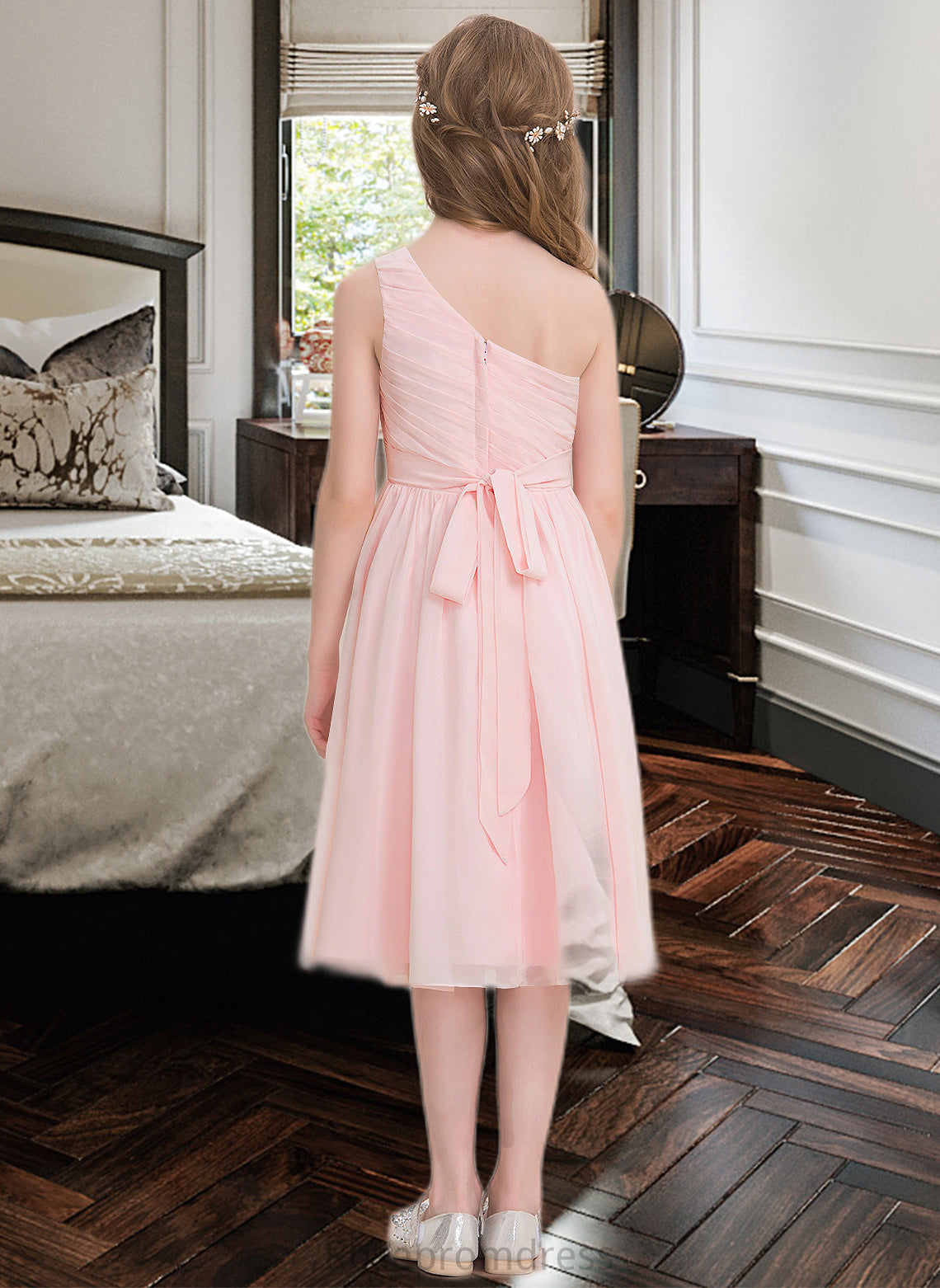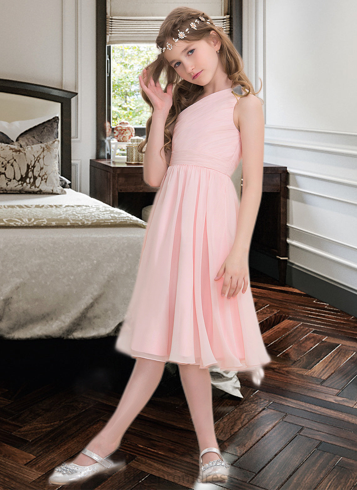 Christine A-Line One-Shoulder Knee-Length Chiffon Junior Bridesmaid Dress With Ruffle SRSP0013499