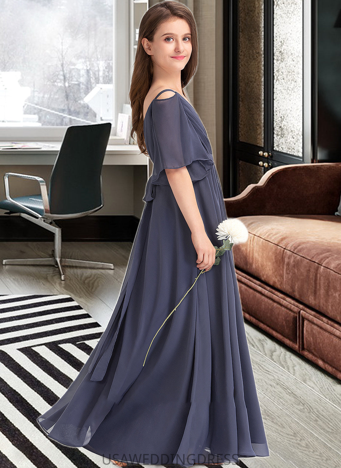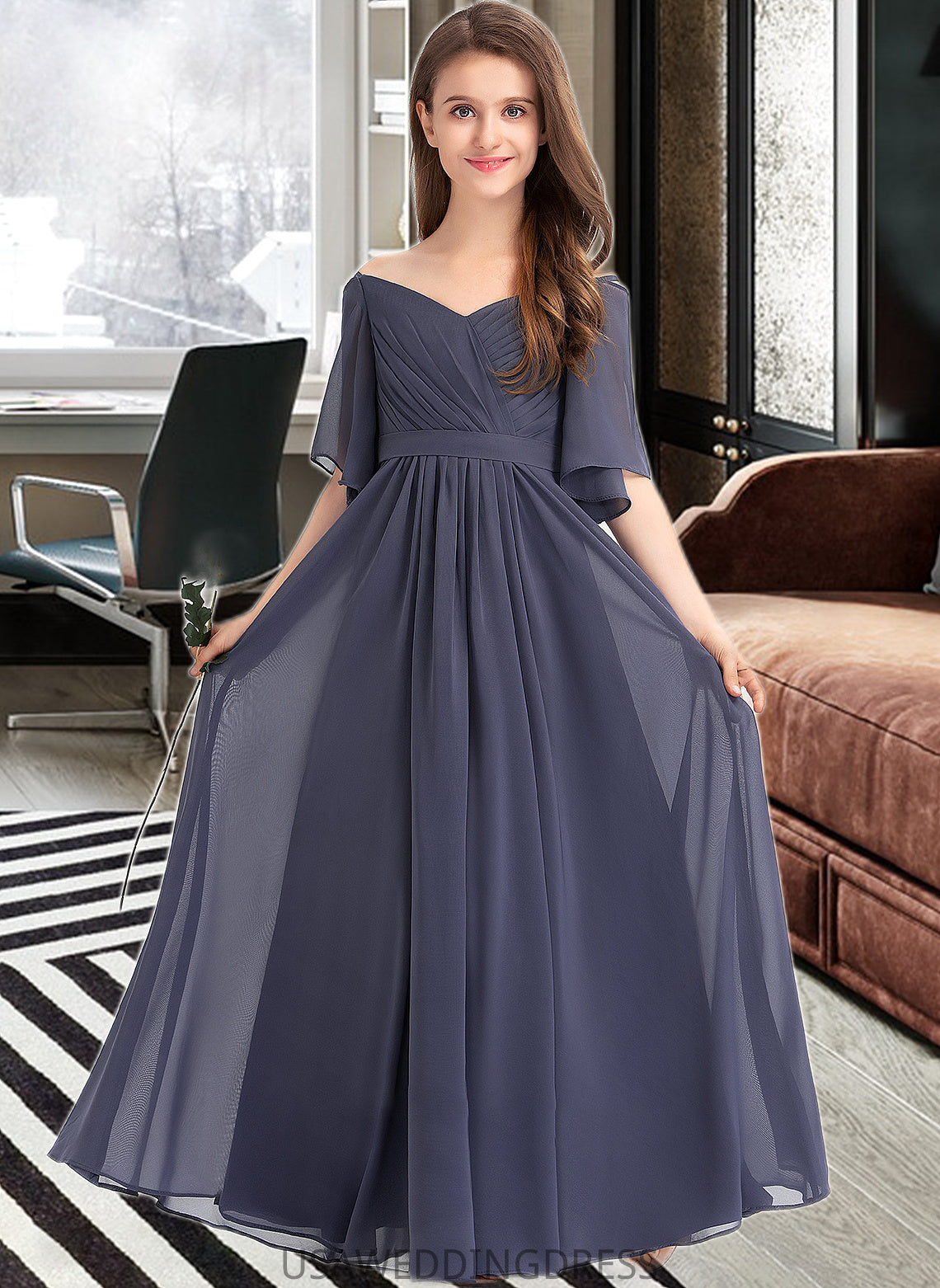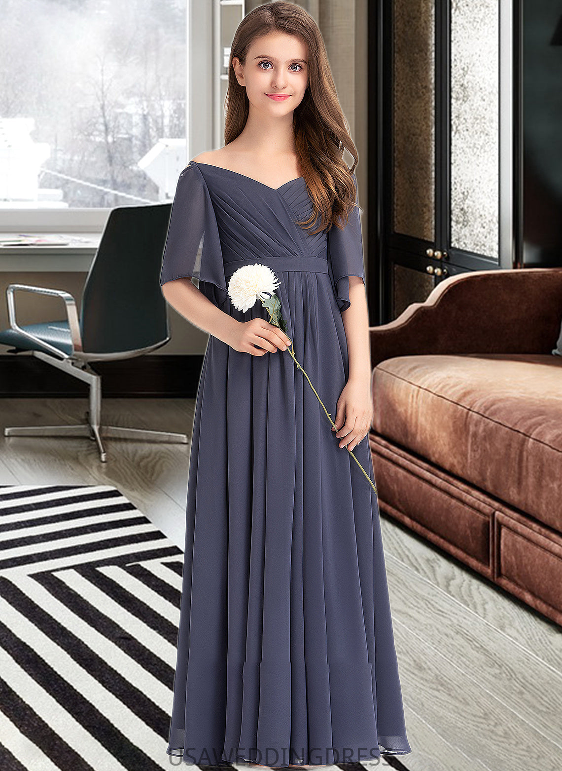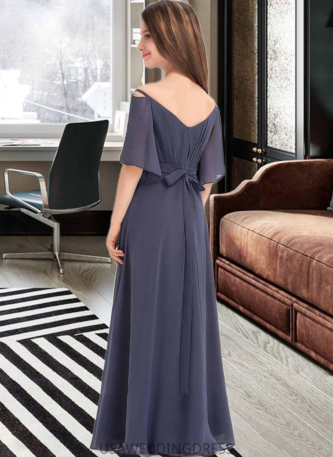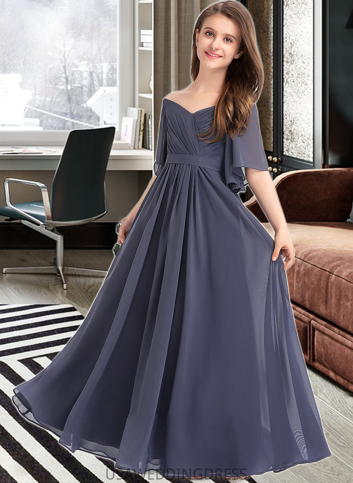 Ciara A-Line Off-the-Shoulder Floor-Length Chiffon Junior Bridesmaid Dress With Ruffle Bow(s) DSP0013479