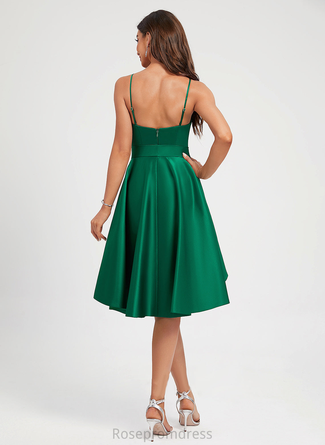 Cocktail Dresses Kasey Square A-Line With Bow(s) Ruffle Cocktail Satin Neckline Dress Knee-Length