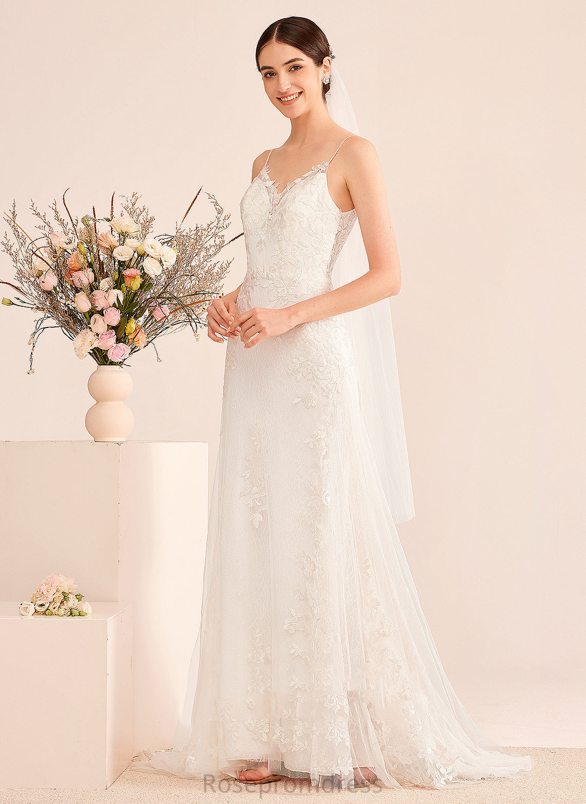 Court A-Line Dress Lace Sequins Tulle Train With Wedding Wedding Dresses V-neck Justine