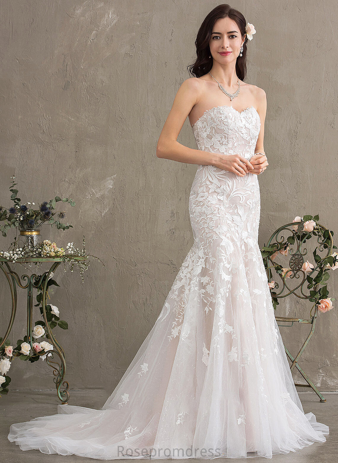 Court Sweetheart Tulle Amara Wedding Dresses Lace Train Dress Wedding Trumpet/Mermaid