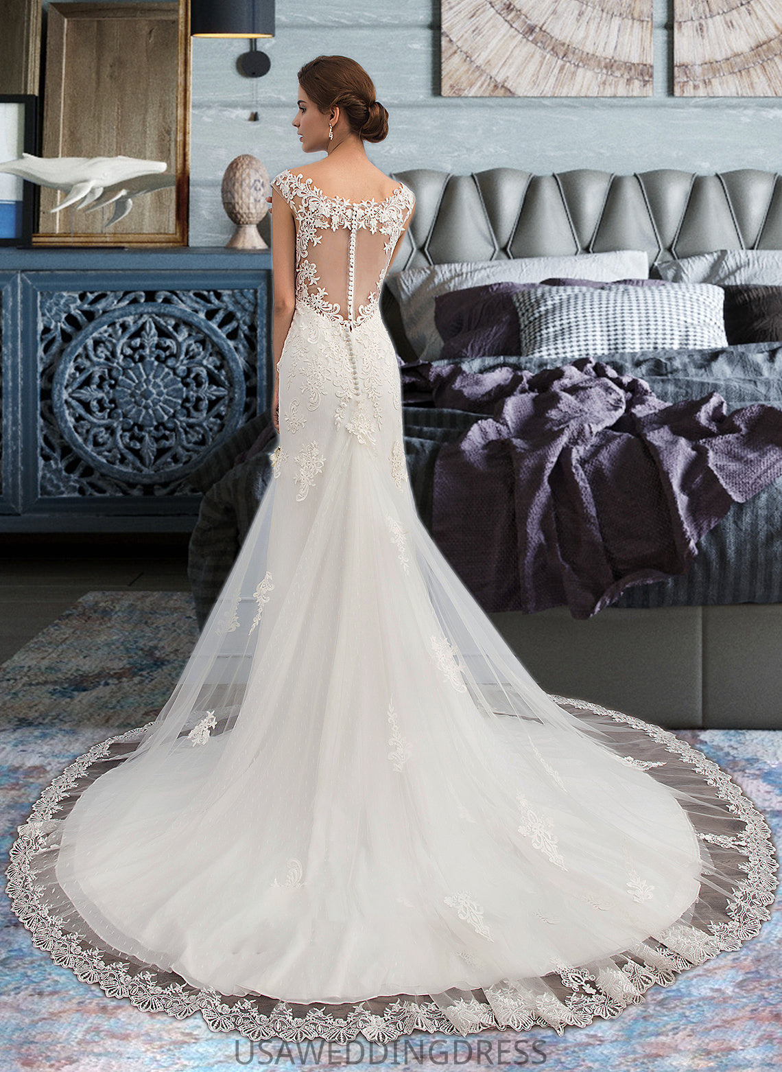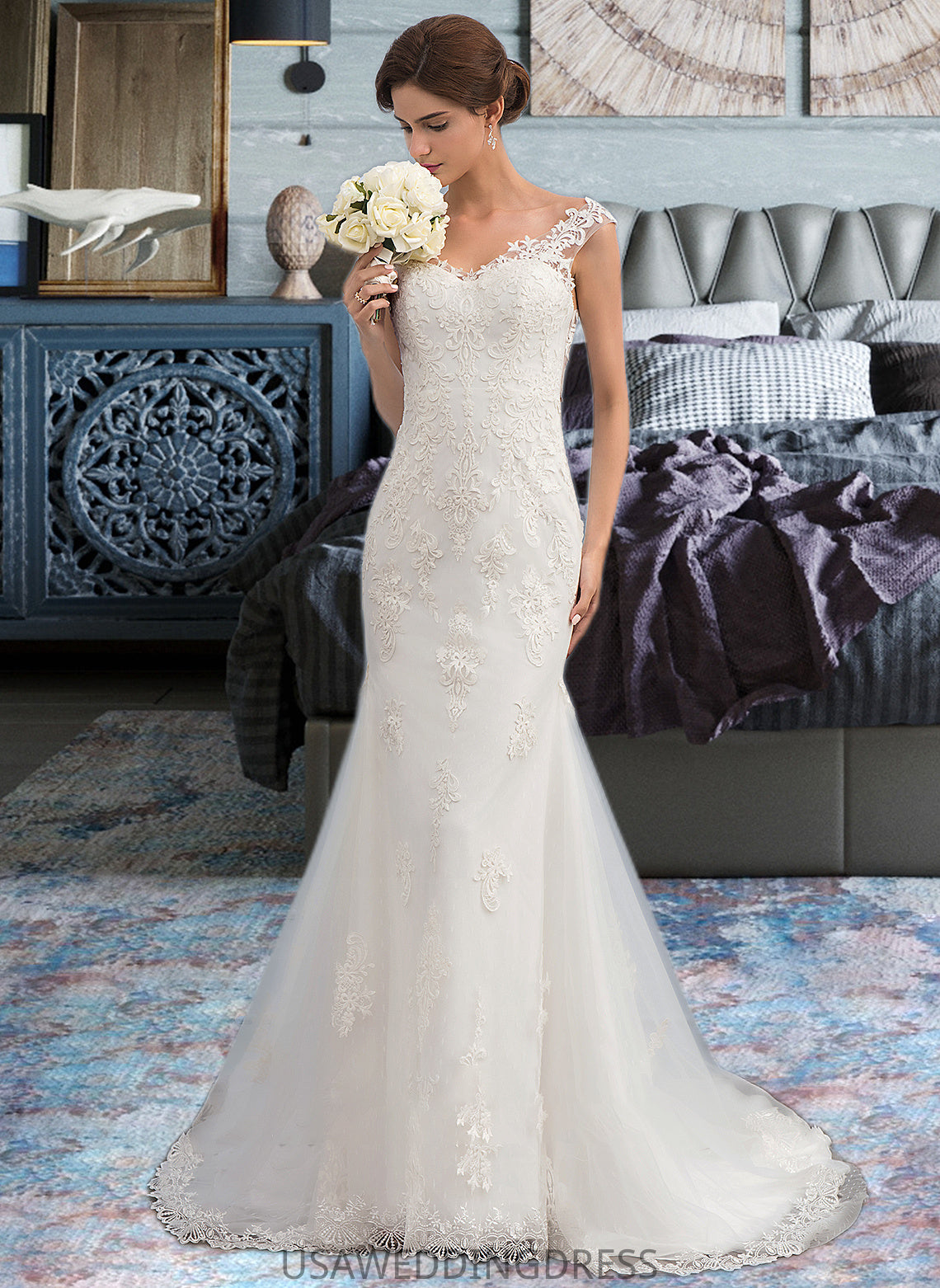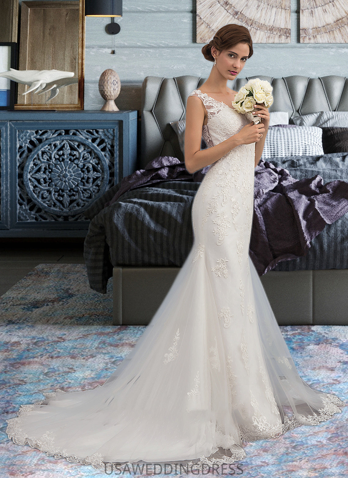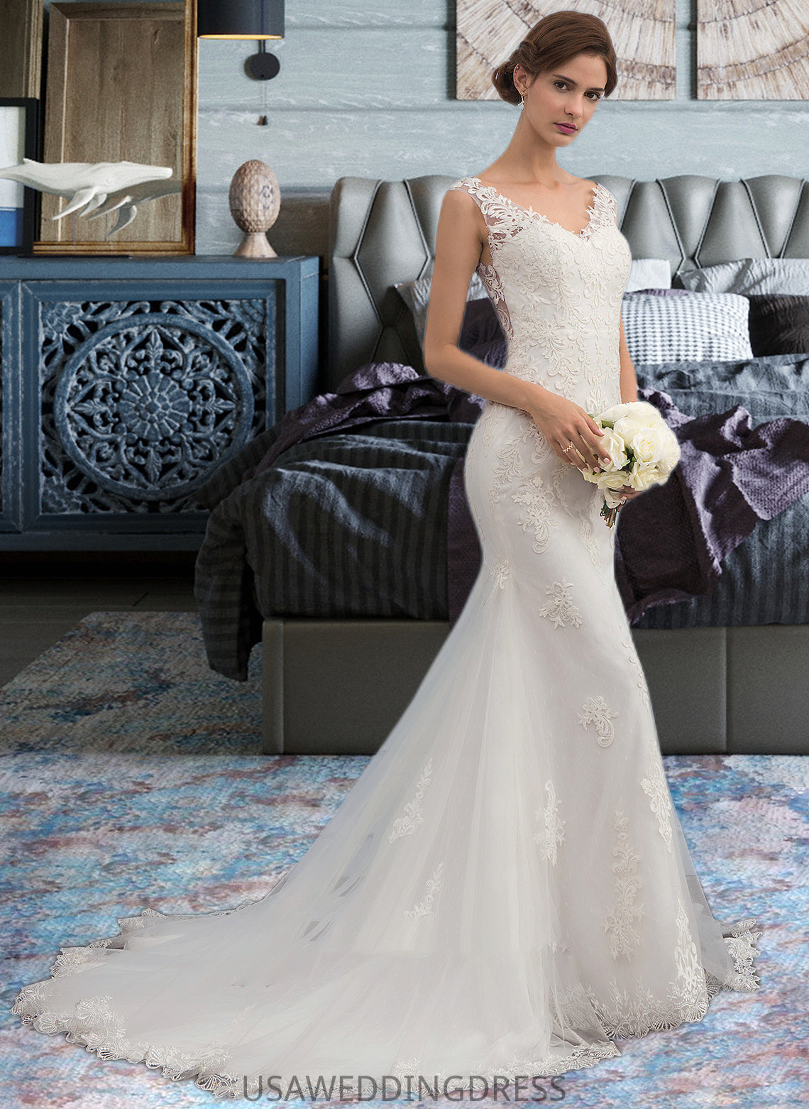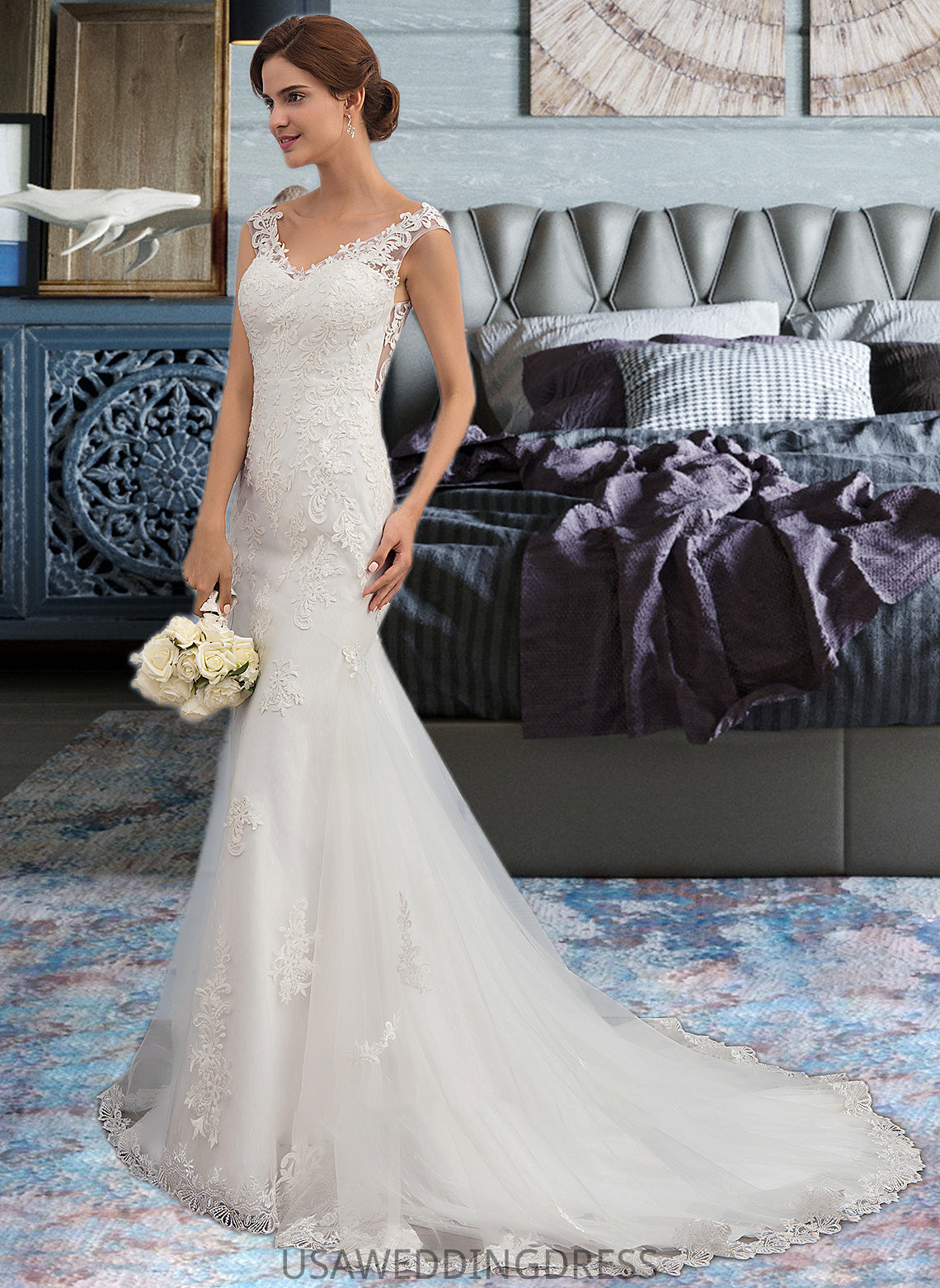 Cristal Trumpet/Mermaid V-neck Court Train Tulle Wedding Dress DSP0013758