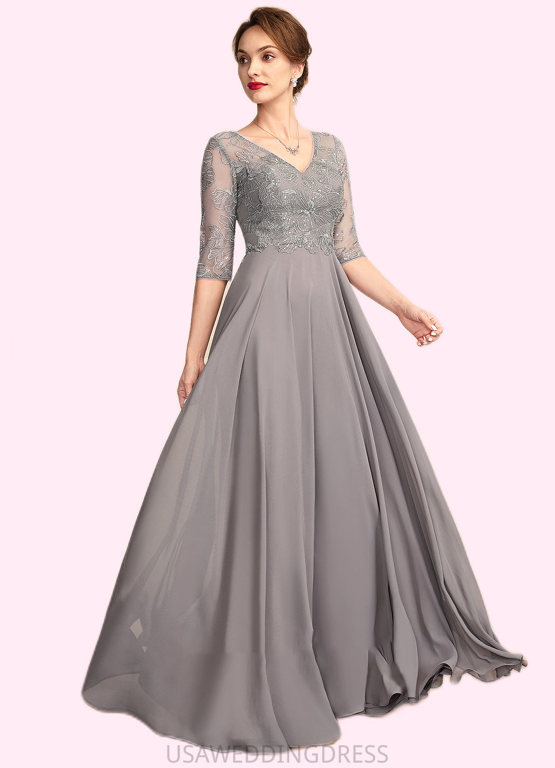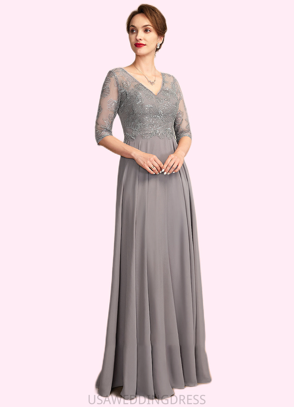 Crystal A-Line V-neck Floor-Length Chiffon Lace Mother of the Bride Dress With Sequins DS126P0014999
