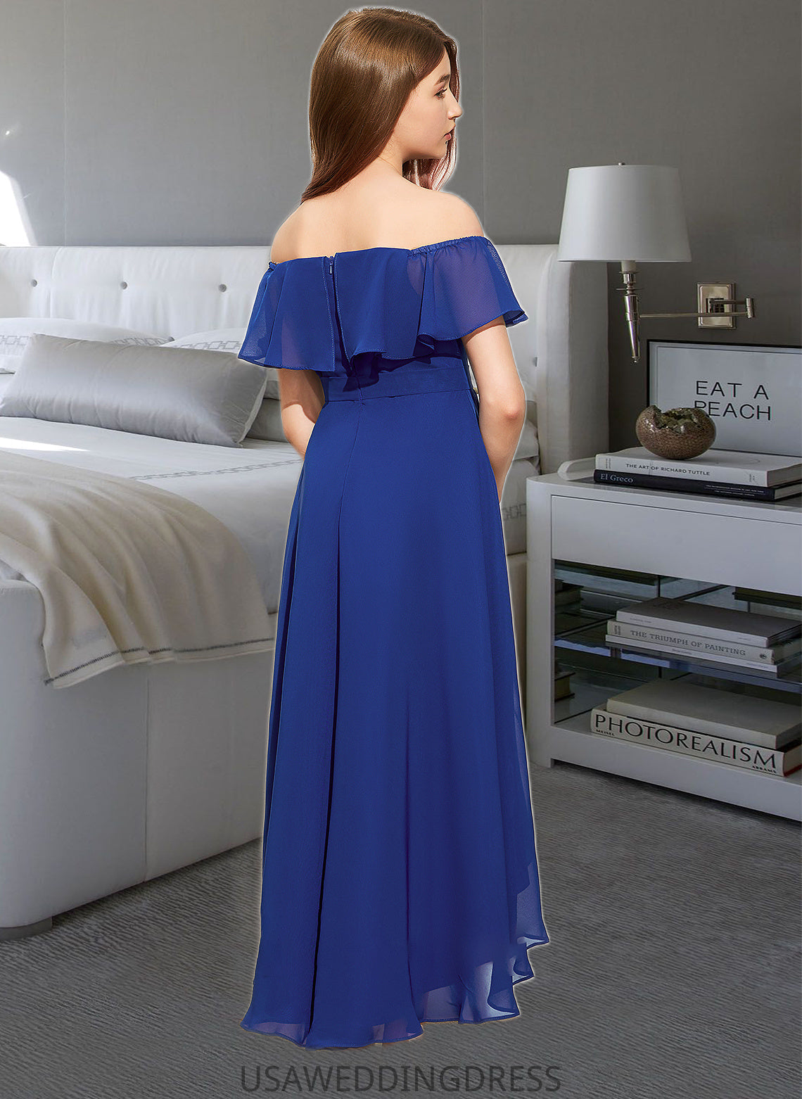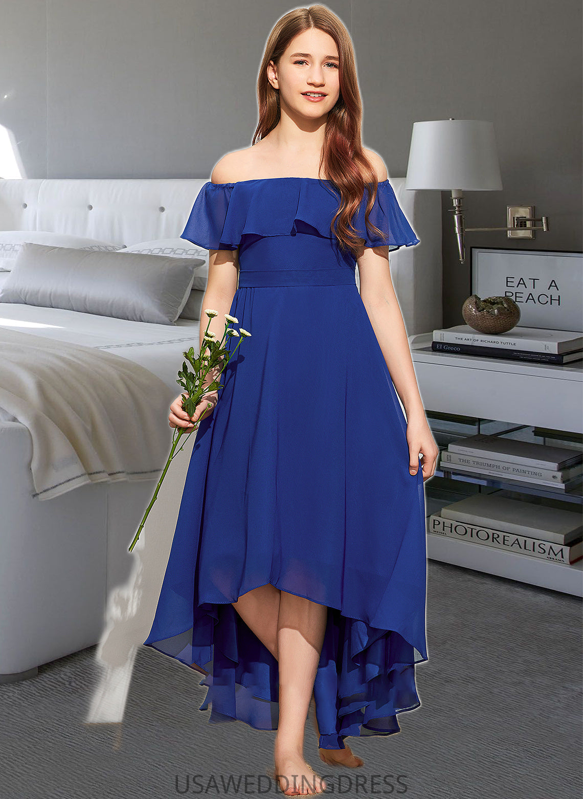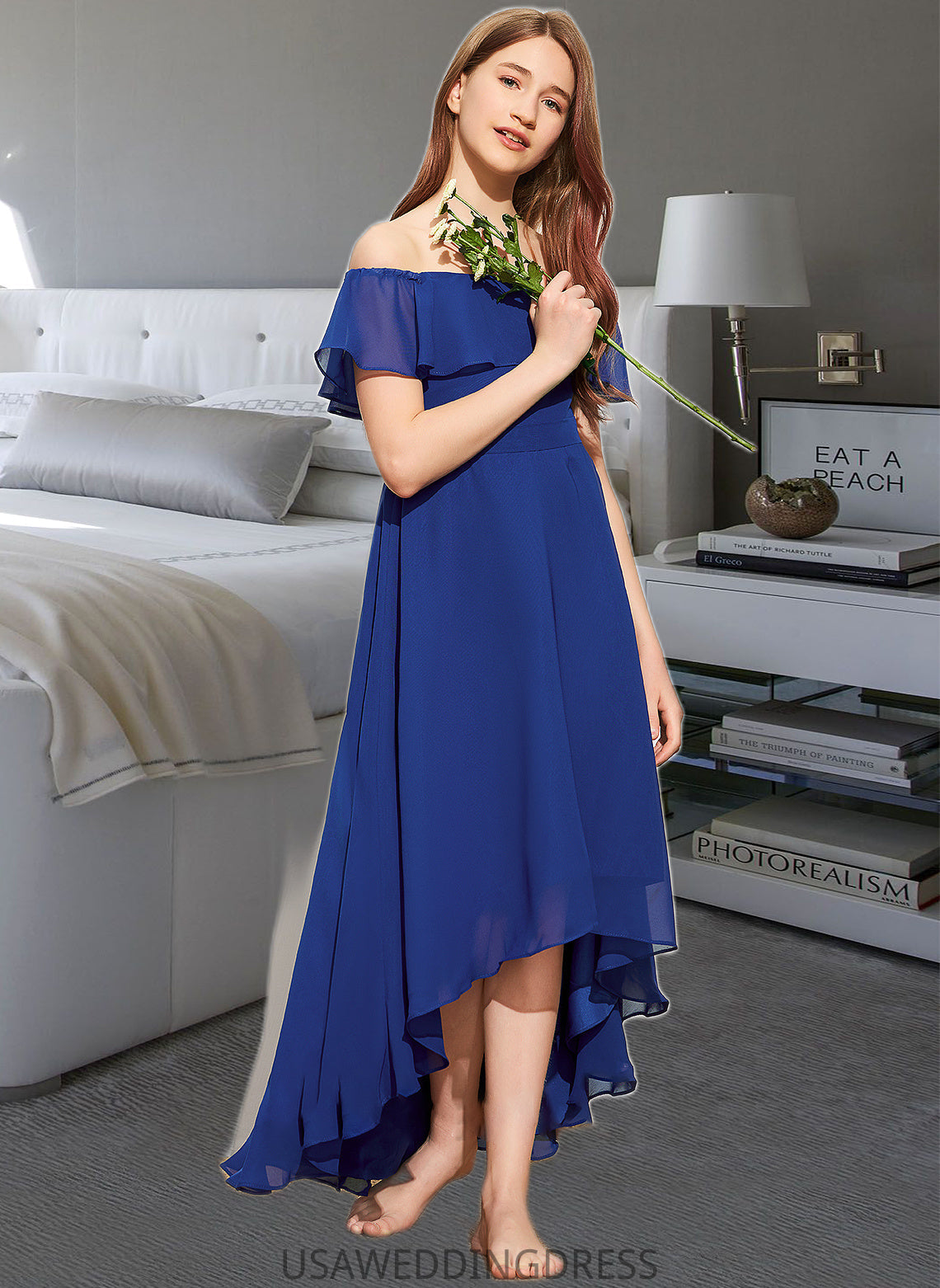 Damaris A-Line Off-the-Shoulder Asymmetrical Chiffon Junior Bridesmaid Dress With Cascading Ruffles DSP0013338