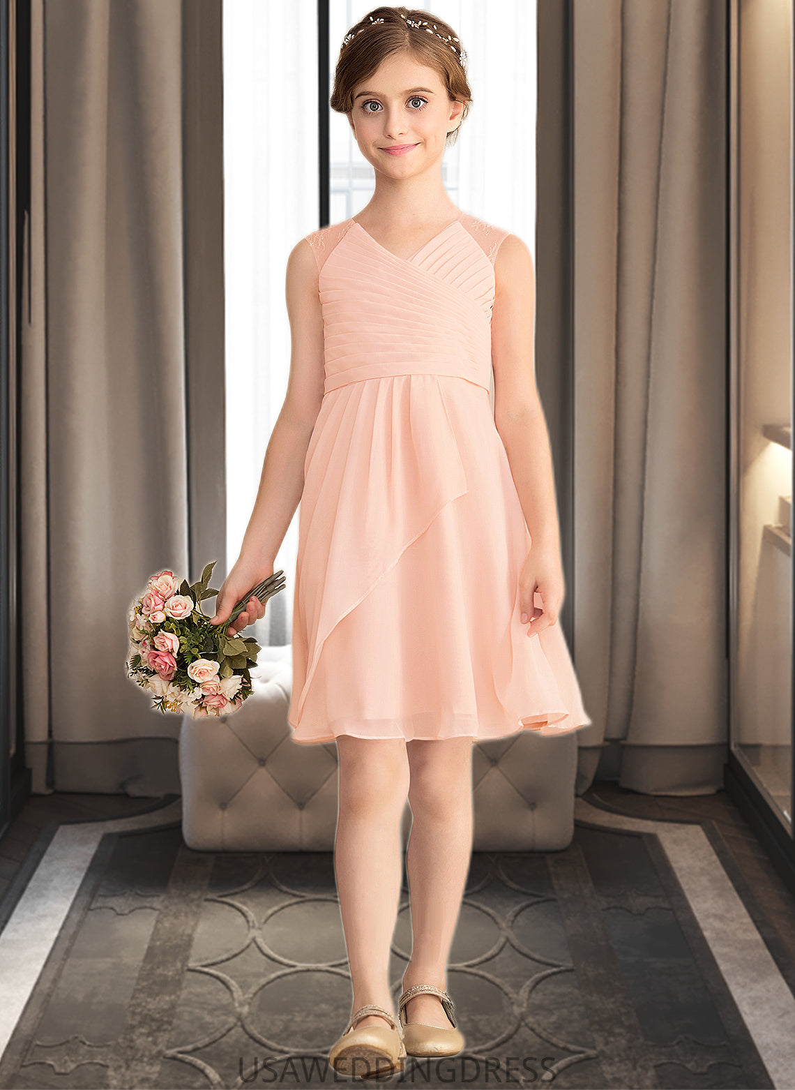 Damaris A-Line V-neck Knee-Length Chiffon Lace Junior Bridesmaid Dress With Cascading Ruffles DSP0013630