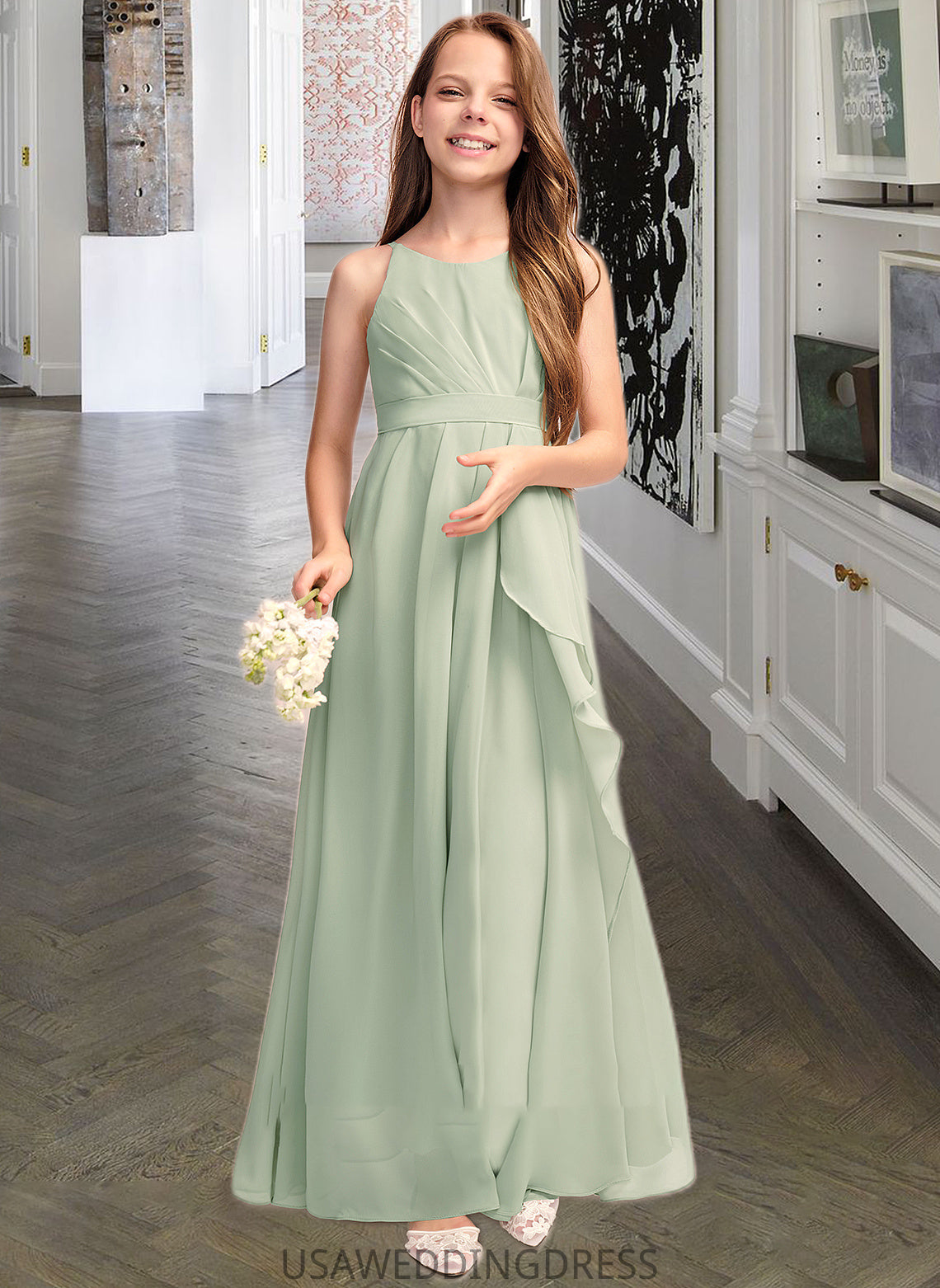 Danica A-Line Scoop Neck Floor-Length Chiffon Junior Bridesmaid Dress With Cascading Ruffles DSP0013318