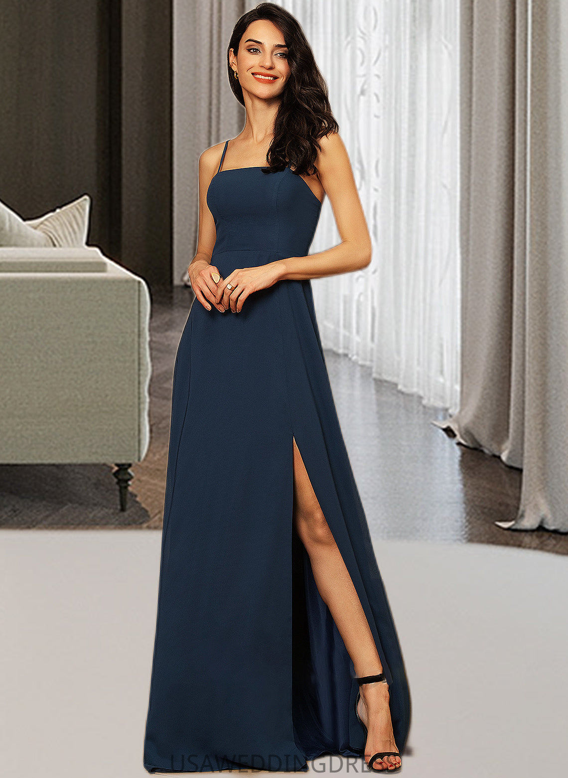 Danika A-LineSquareNecklineFloor-LengthChiffonBridesmaidDressWithSplitFront#251397 DSP0013036