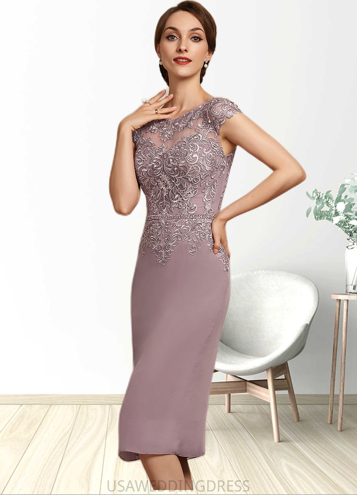 Danika Sheath/Column Scoop Neck Knee-Length Chiffon Lace Mother of the Bride Dress With Beading Sequins DS126P0014666