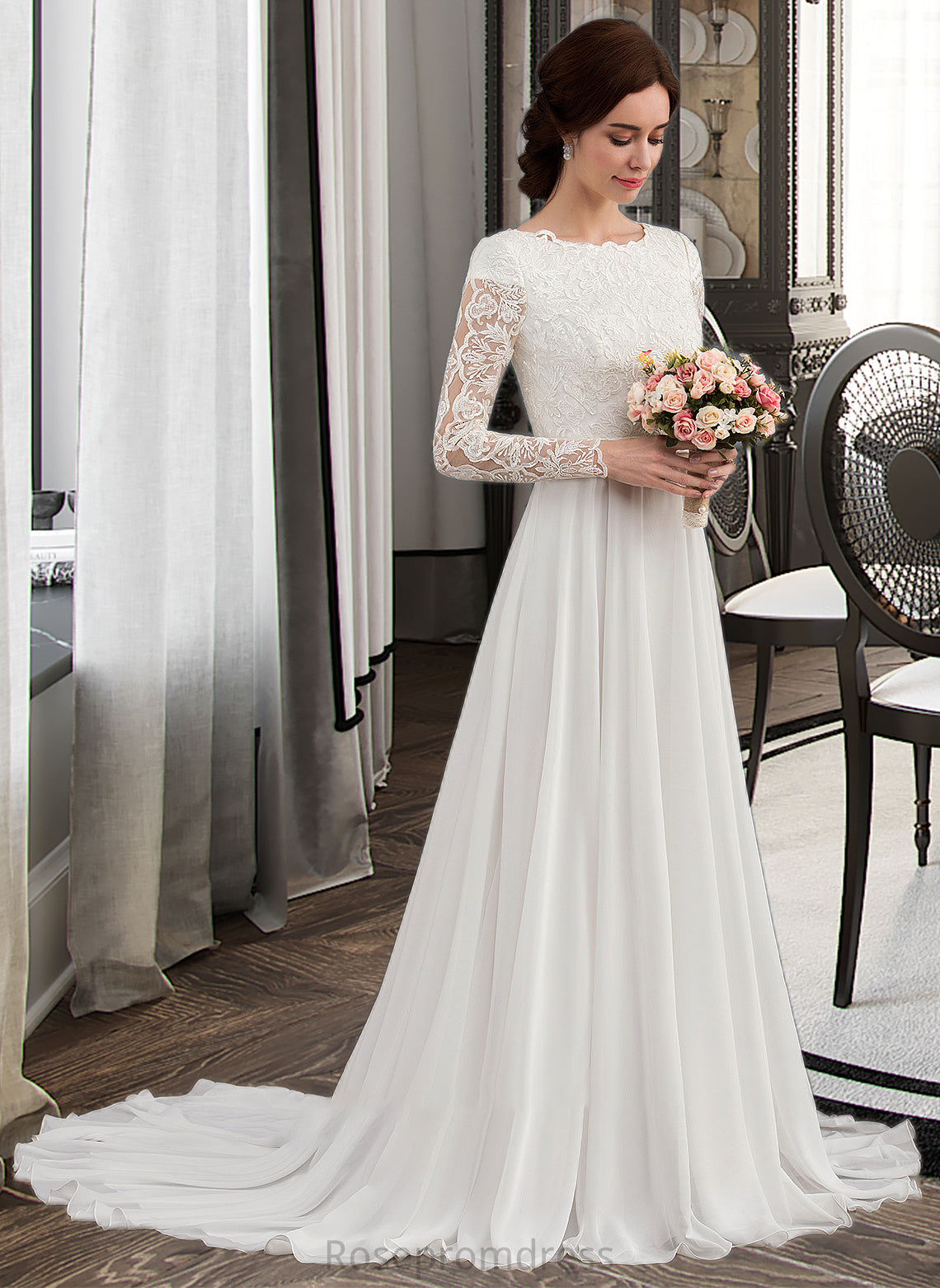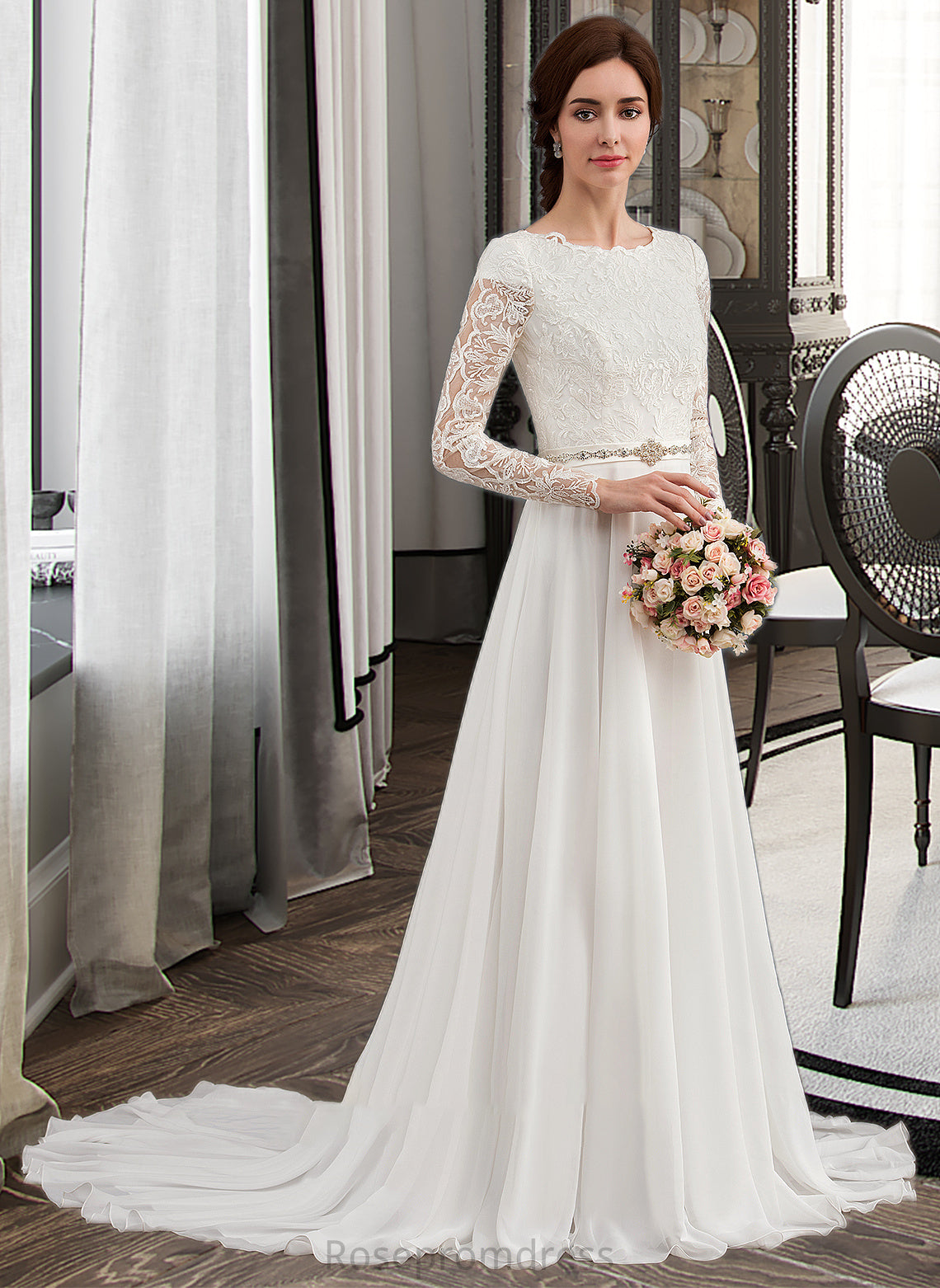 Danna A-Line Scoop Neck Court Train Chiffon Wedding Dress With Beading SRSP0013800