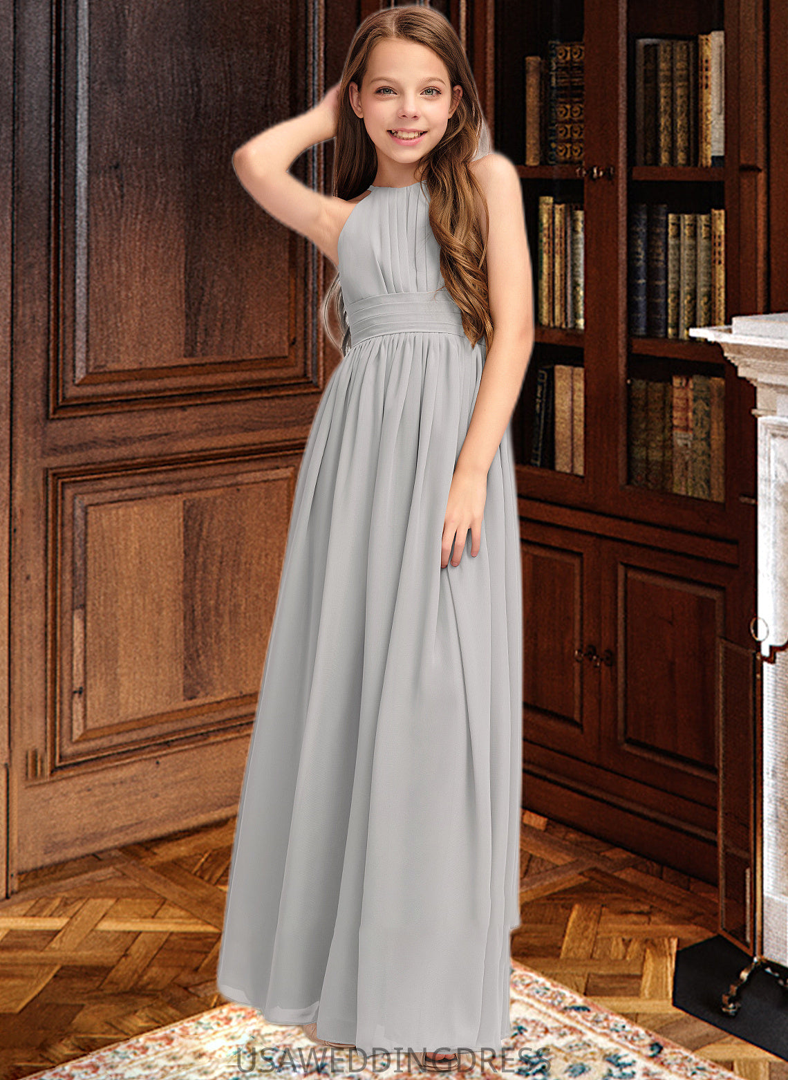 Desiree A-Line Scoop Neck Floor-Length Chiffon Junior Bridesmaid Dress With Ruffle DSP0013325