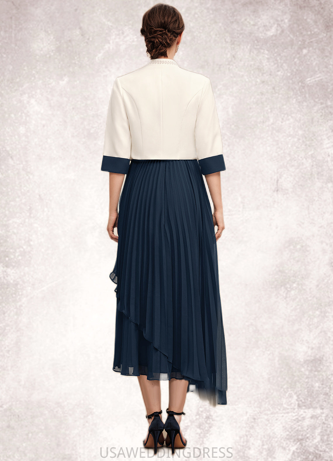 Desiree A-Line Square Neckline Tea-Length Chiffon Mother of the Bride Dress With Beading Sequins Pleated DS126P0014594