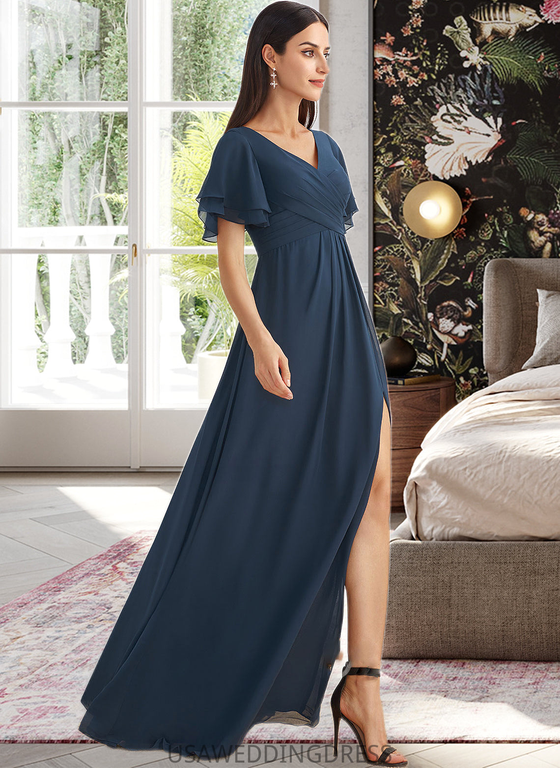 Destiney A-Line V-neck Floor-Length Bridesmaid Dress With Split Front DSP0012781