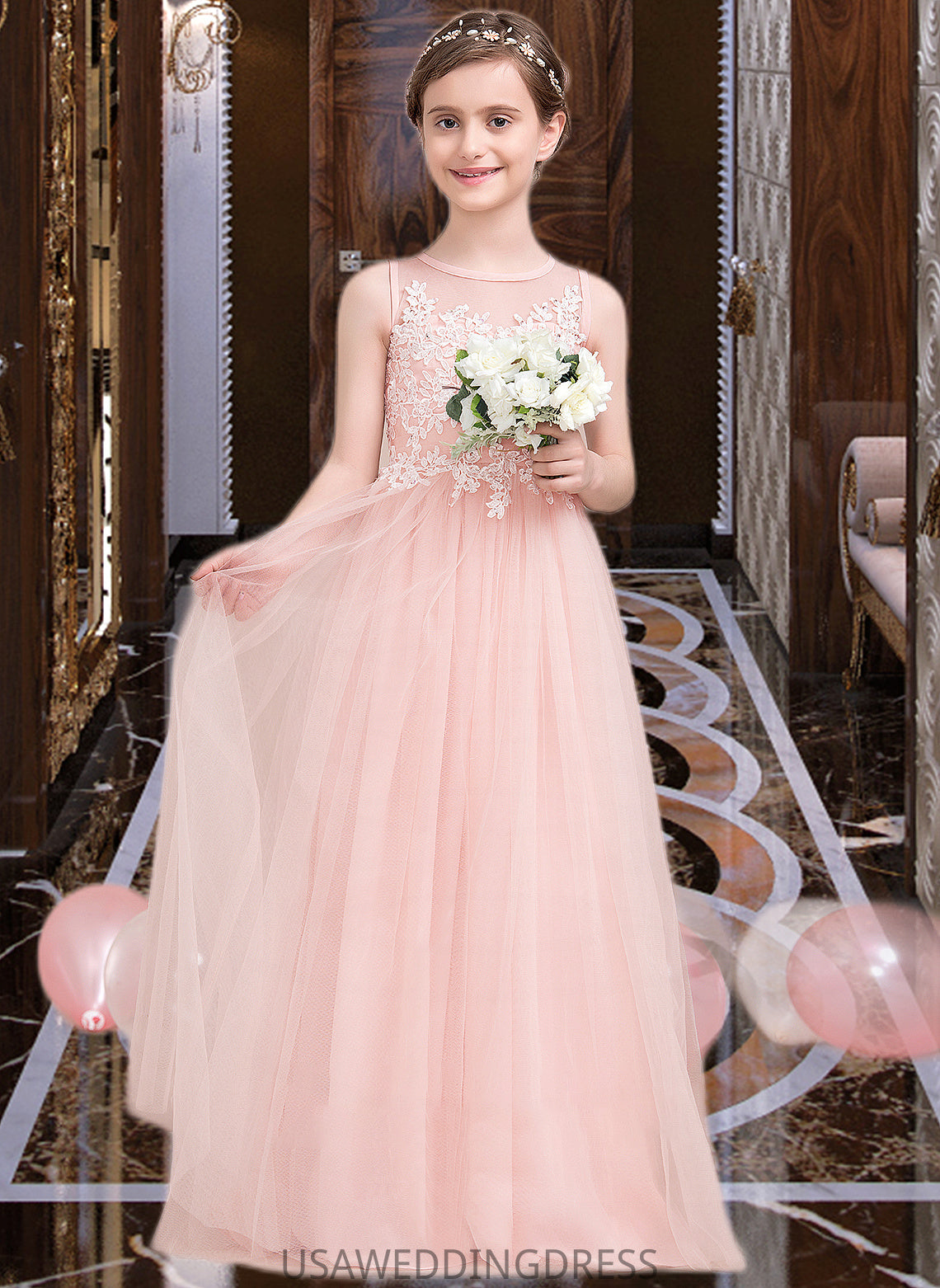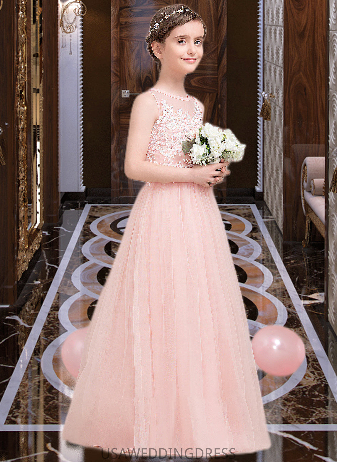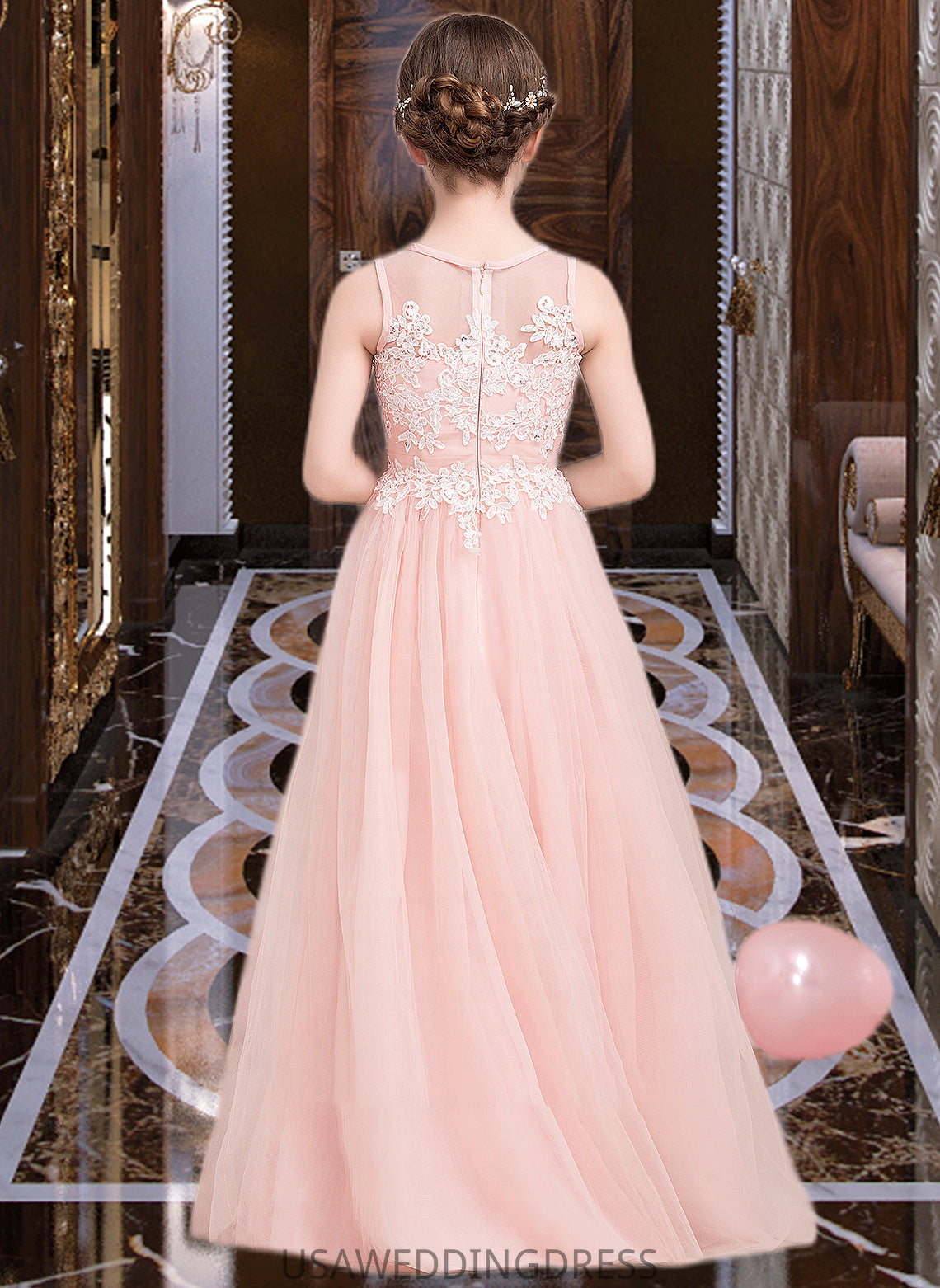 Diamond A-Line Scoop Neck Floor-Length Tulle Junior Bridesmaid Dress With Beading Sequins DSP0013444