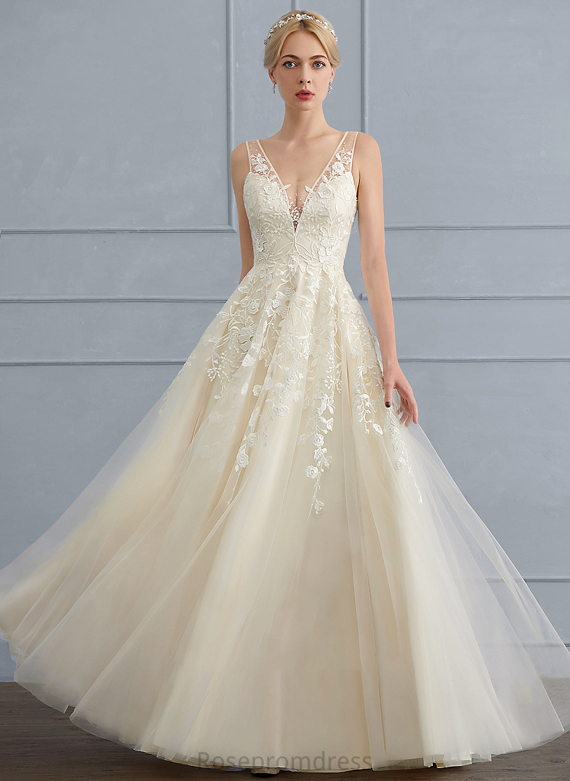 Dress A-Line Tulle Sequins Wedding Dresses Floor-Length Areli V-neck Wedding With Beading