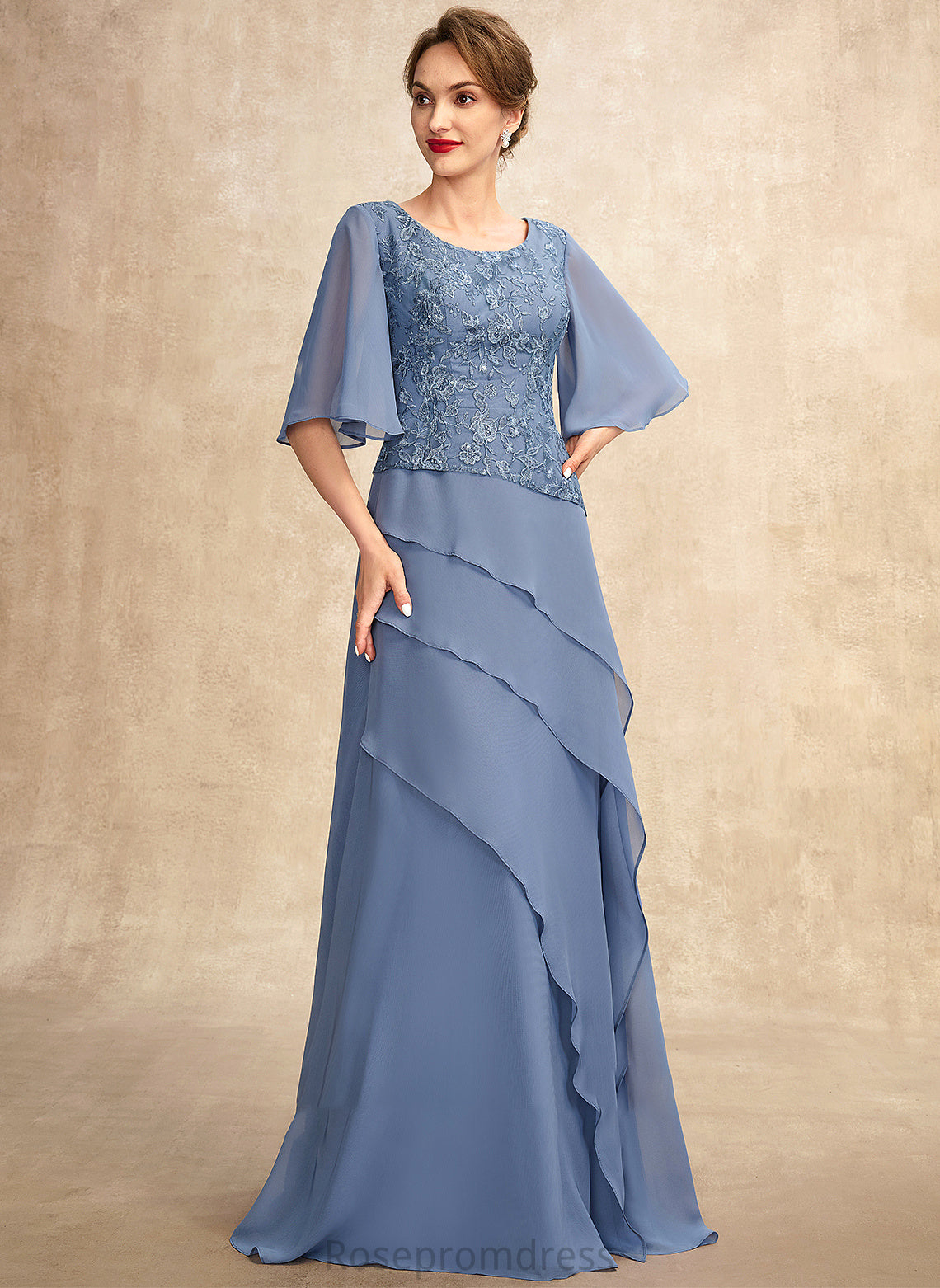 Dress Chiffon Bride the Cascading Neck Sequins A-Line Tiana With Ruffles Scoop Lace Mother of the Bride Dresses Floor-Length of Mother