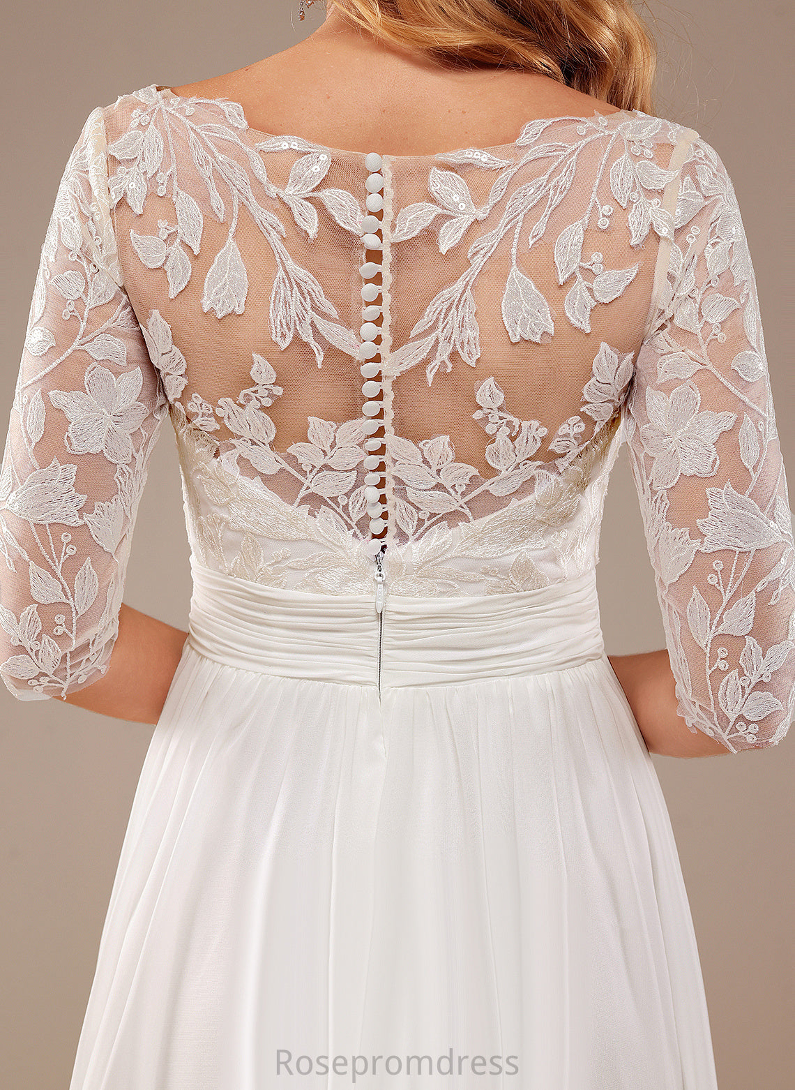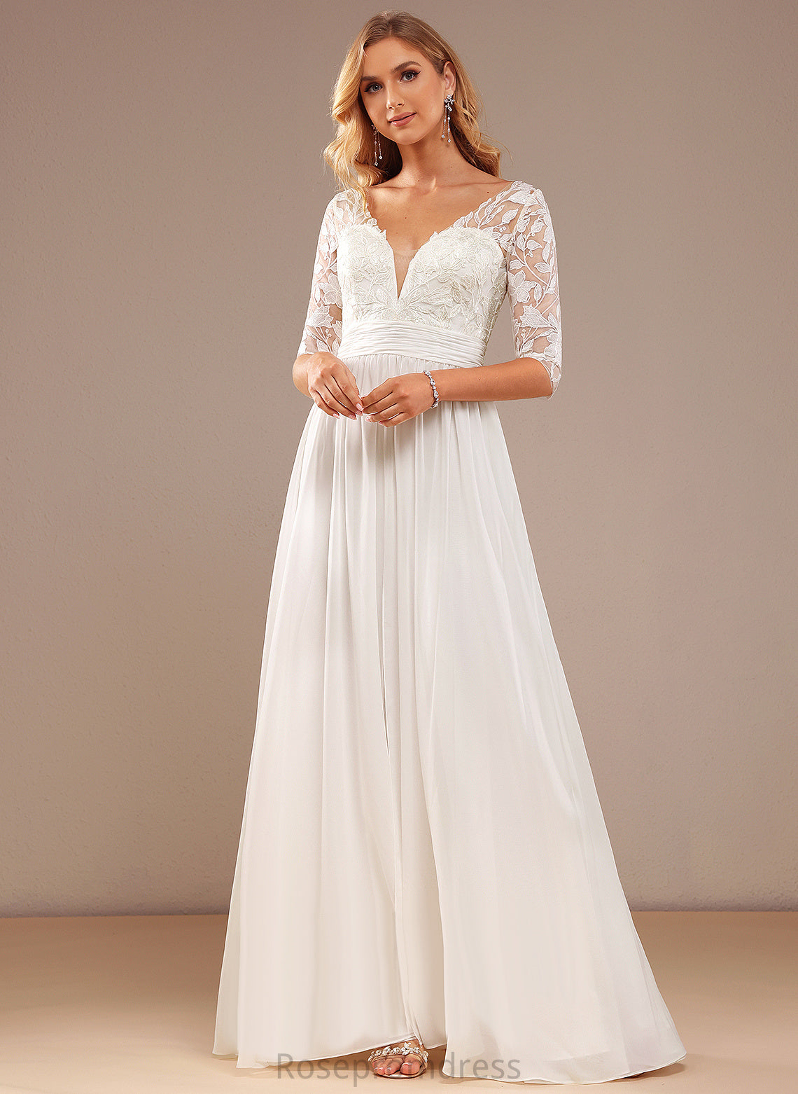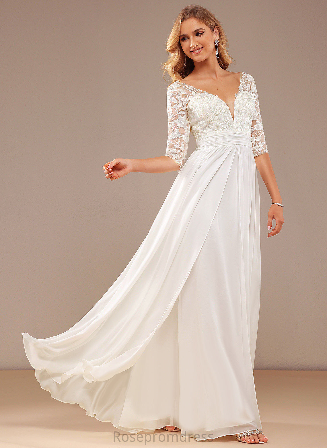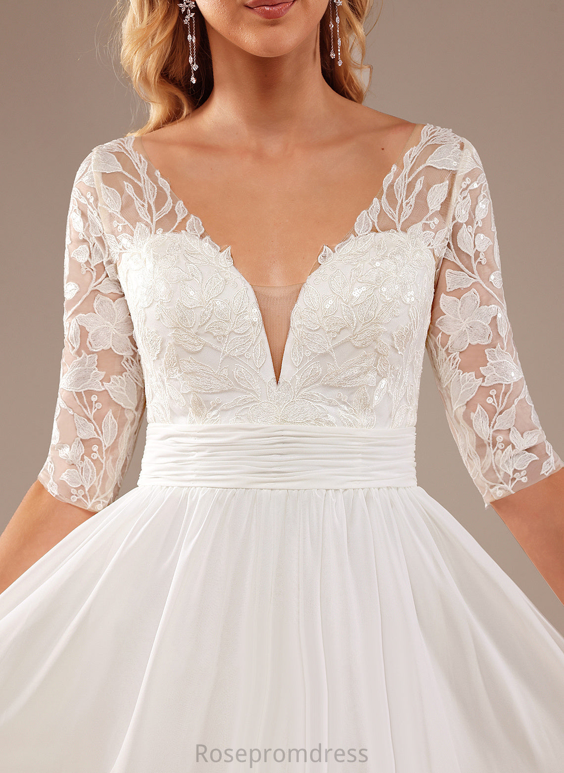 Dress Chiffon Floor-Length V-neck Hilda Wedding Dresses Ruffle A-Line With Sequins Lace Wedding
