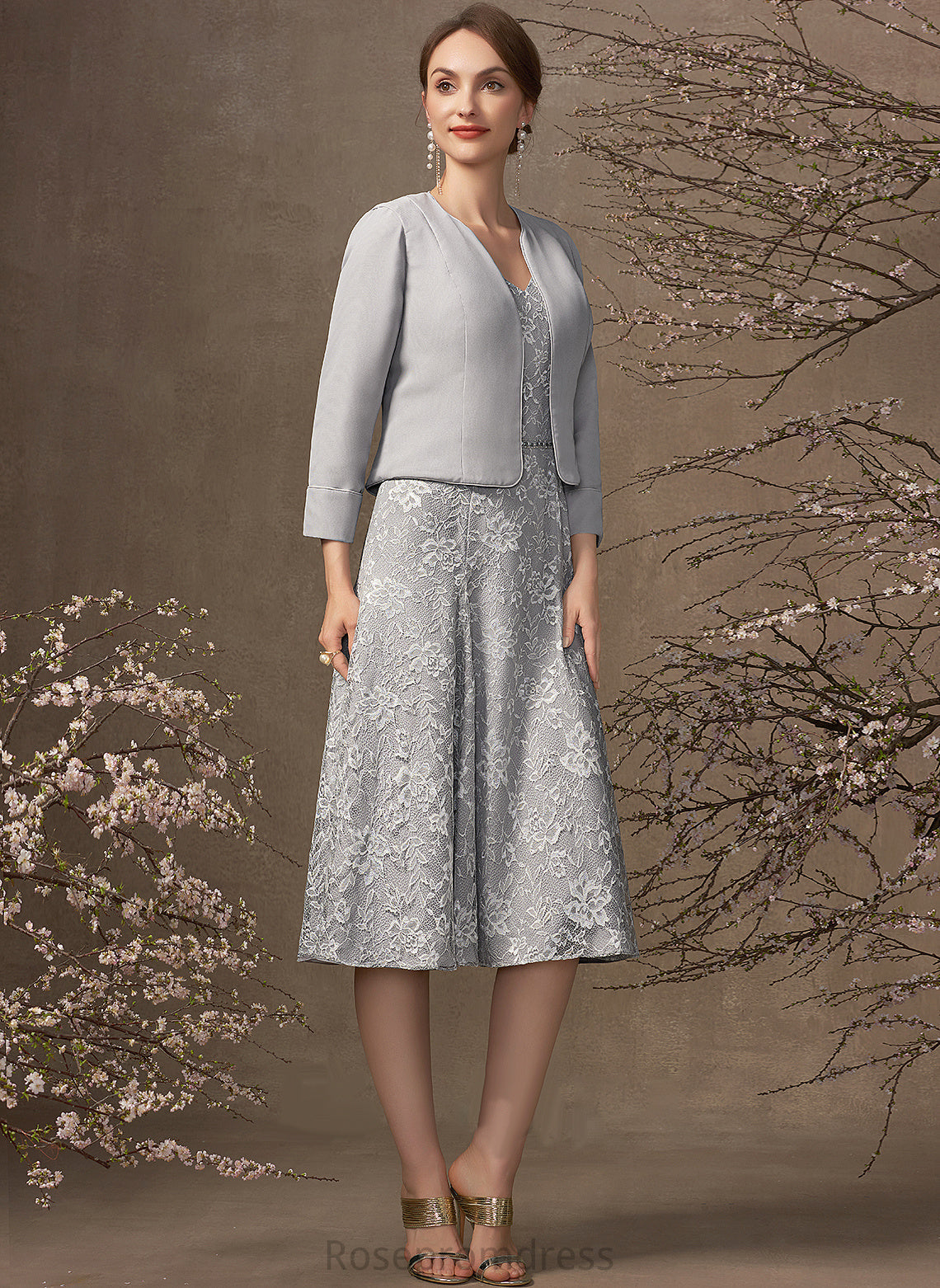 Dress Isis Sequins Mother of the Bride Dresses Bride V-neck the A-Line Lace With Beading Mother of Knee-Length