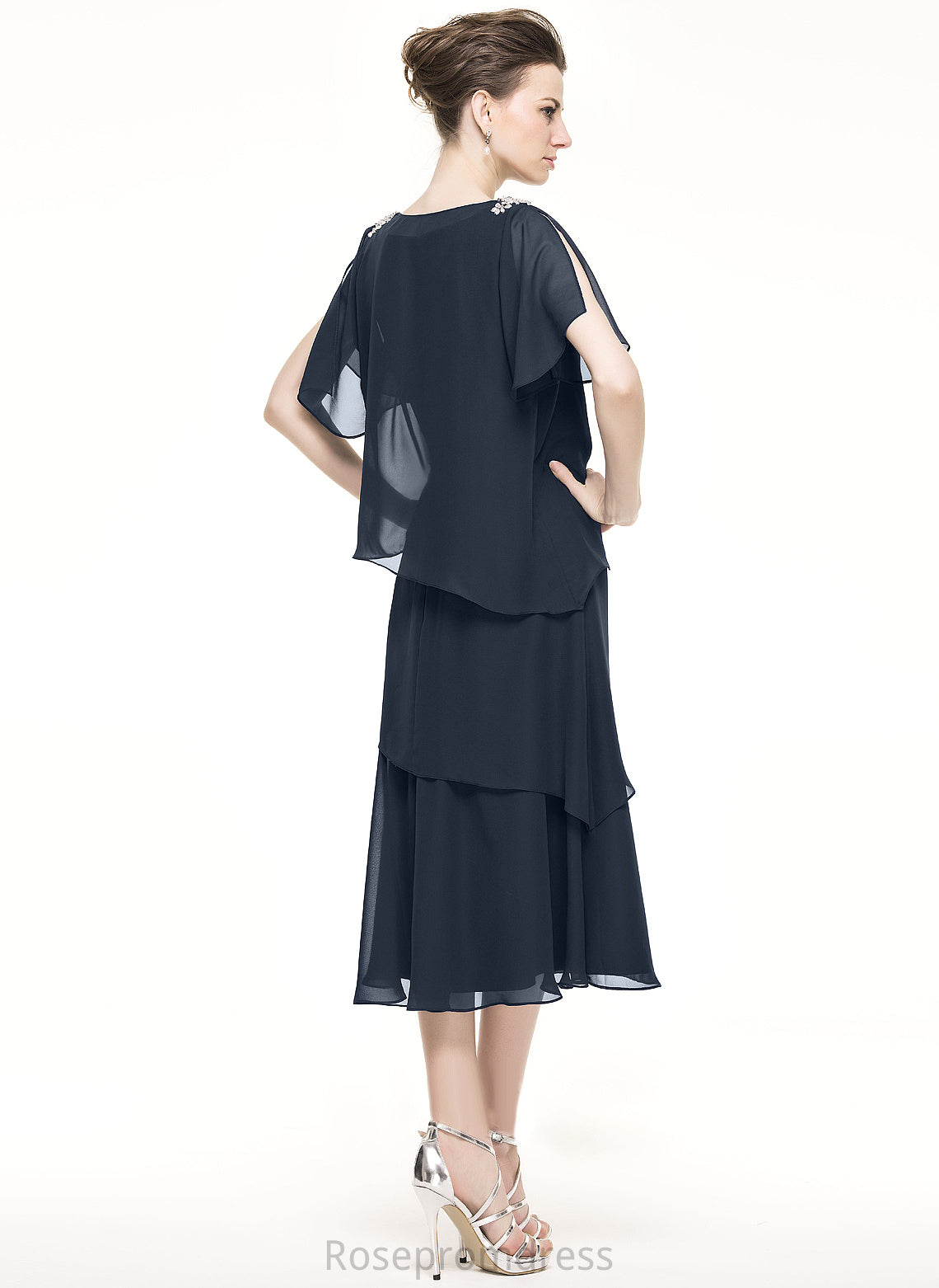 Dress Mother of the Bride Dresses Ruffles Chiffon of Mother Cascading Bride Amirah With A-Line Sequins the Scoop Tea-Length Beading Neck