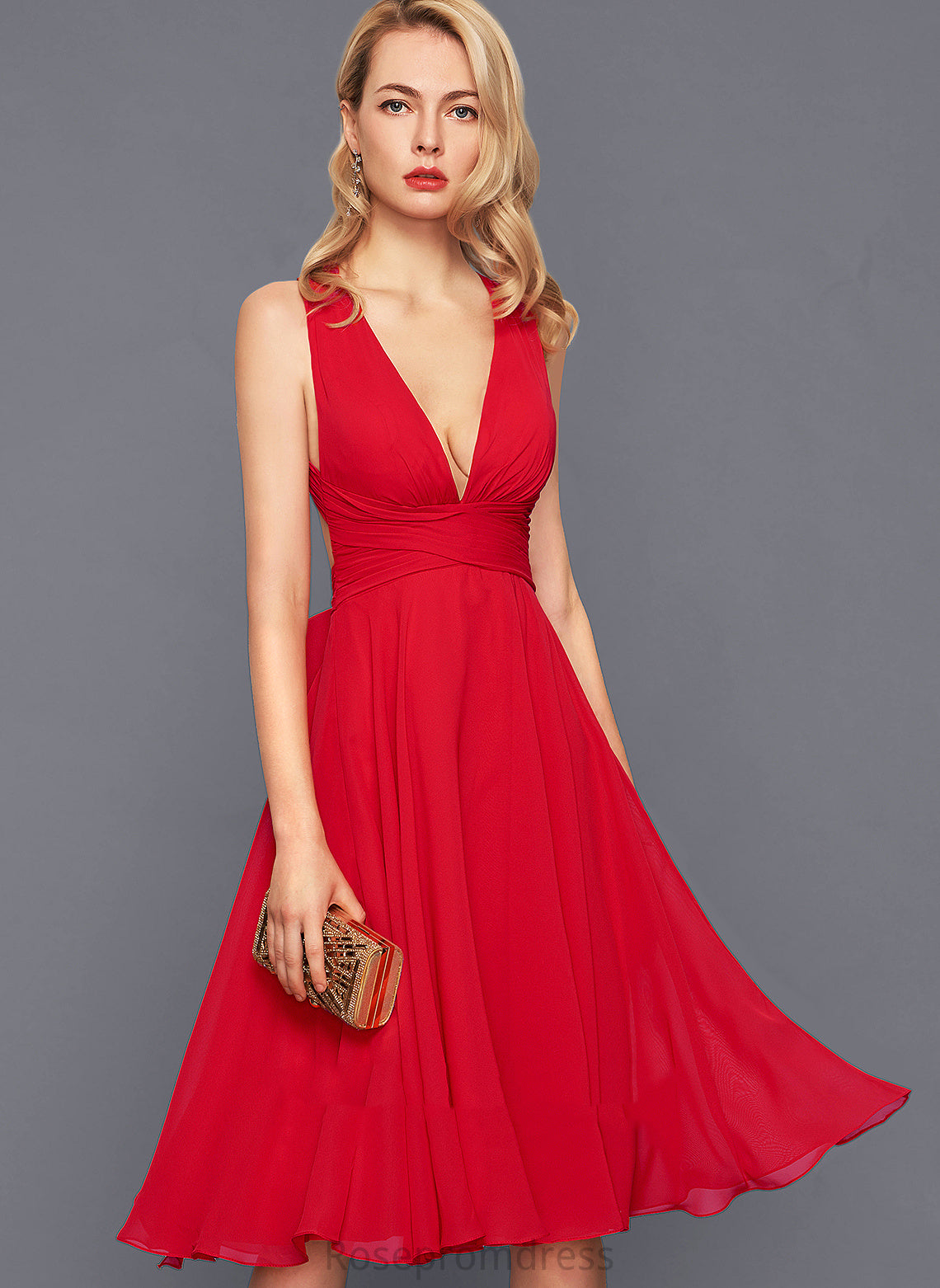 Dress V-neck Chiffon Carolina Cocktail Dresses Knee-Length Cocktail With Bow(s) A-Line Ruffle