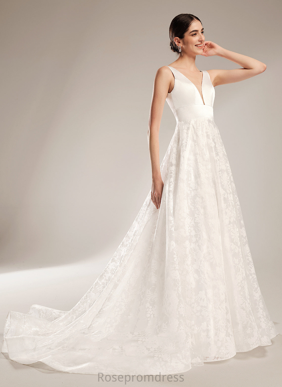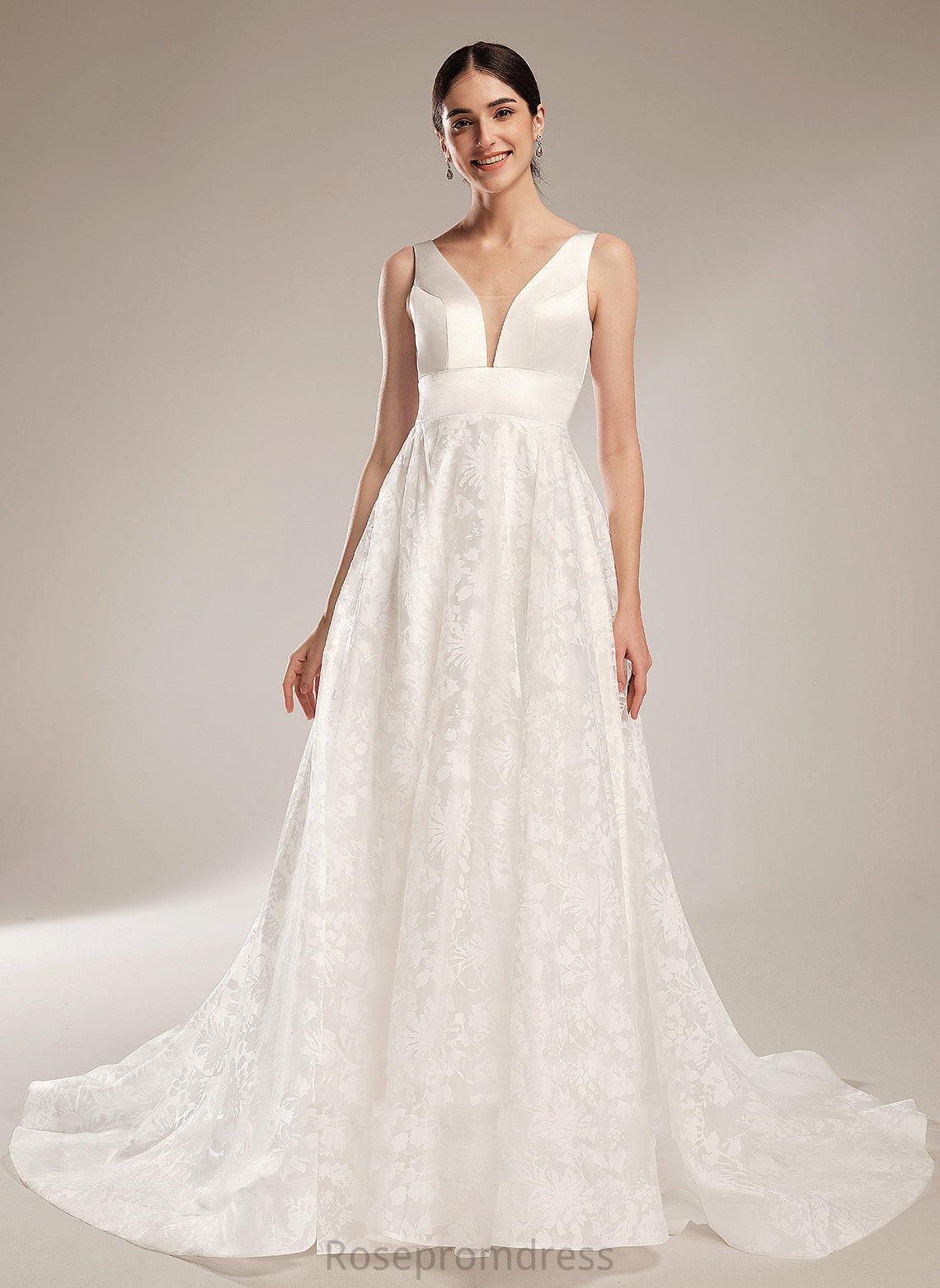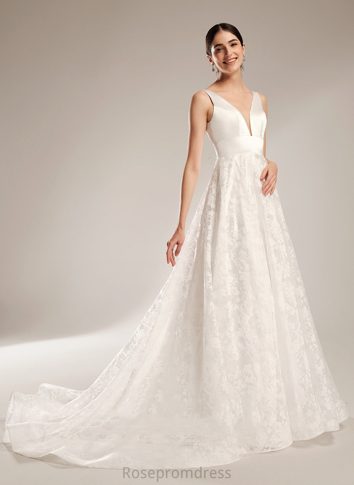 Dress V-neck Lace Wedding Dresses Satin Ball-Gown/Princess Dalia Chapel Wedding Train