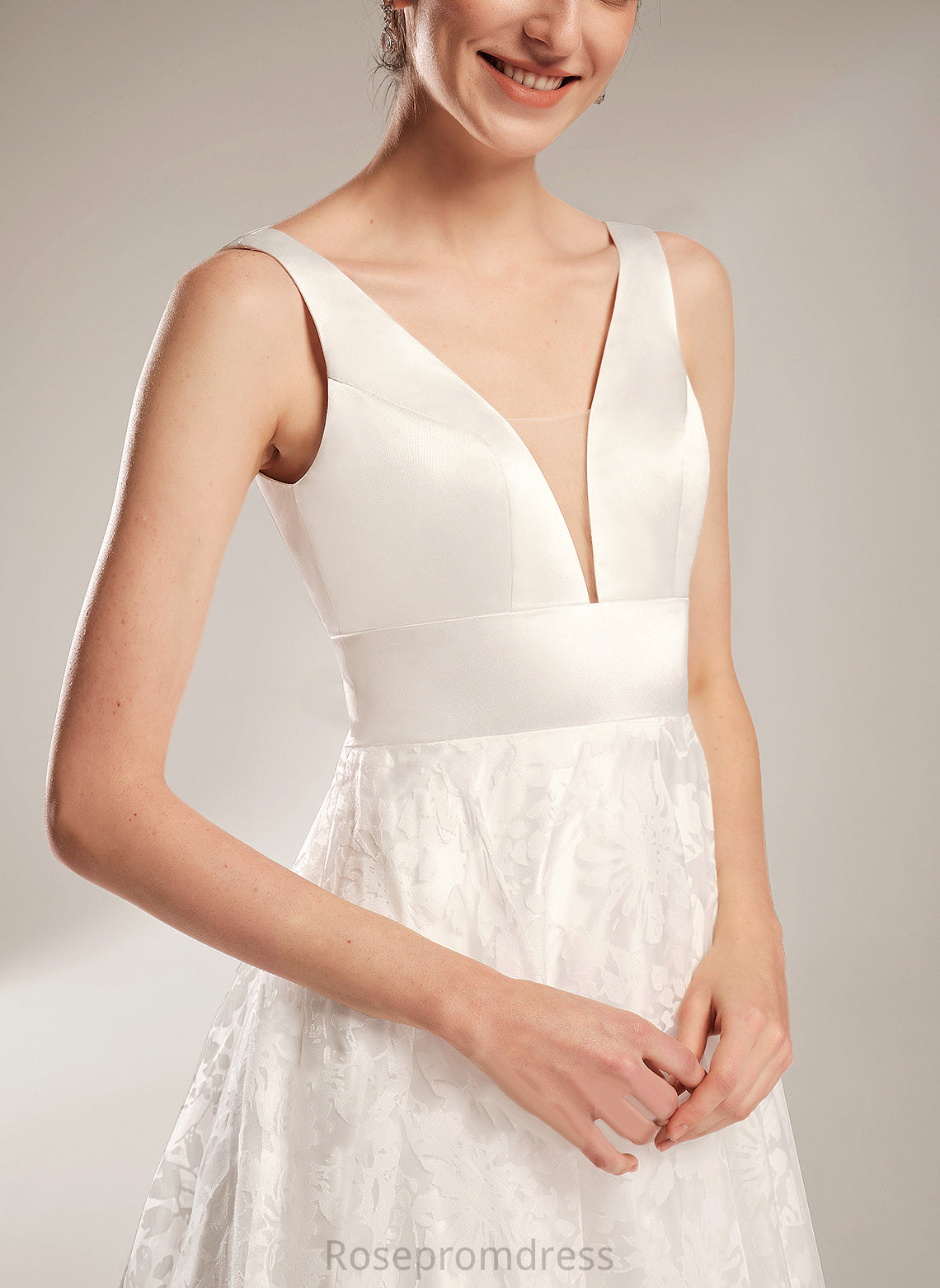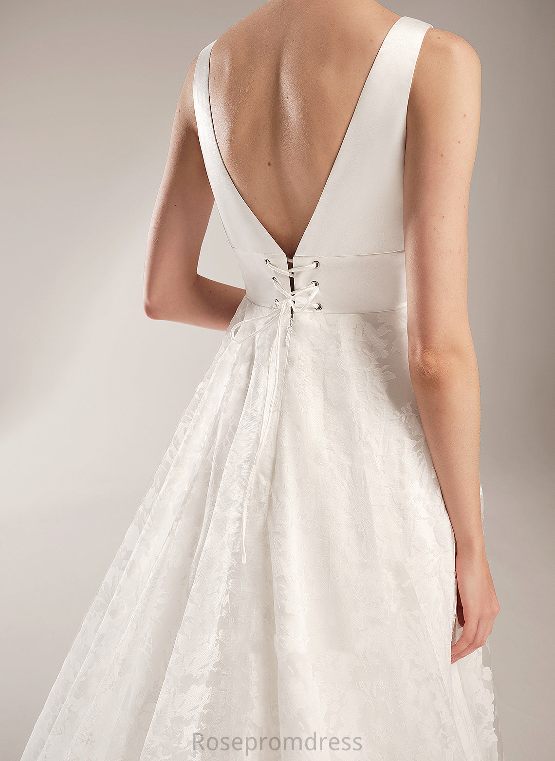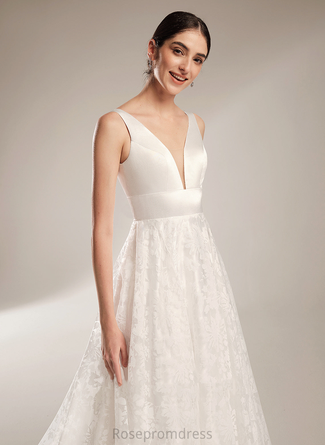 Dress V-neck Lace Wedding Dresses Satin Ball-Gown/Princess Dalia Chapel Wedding Train