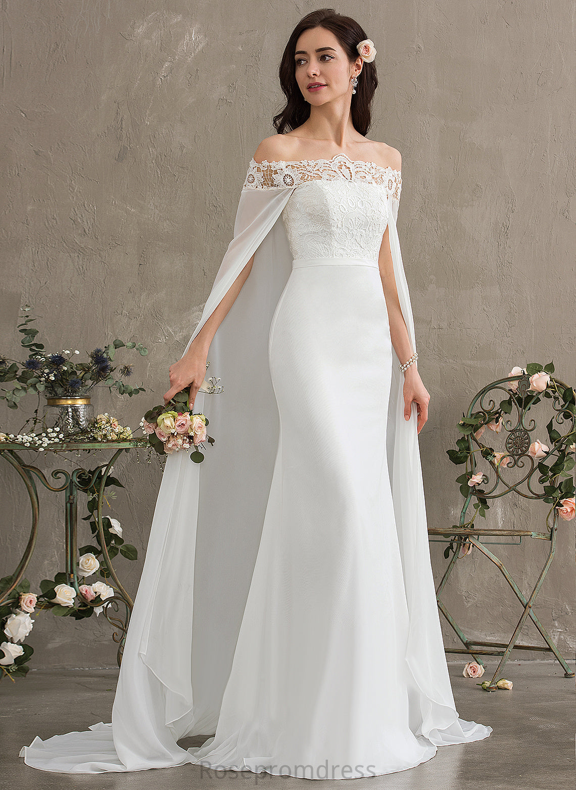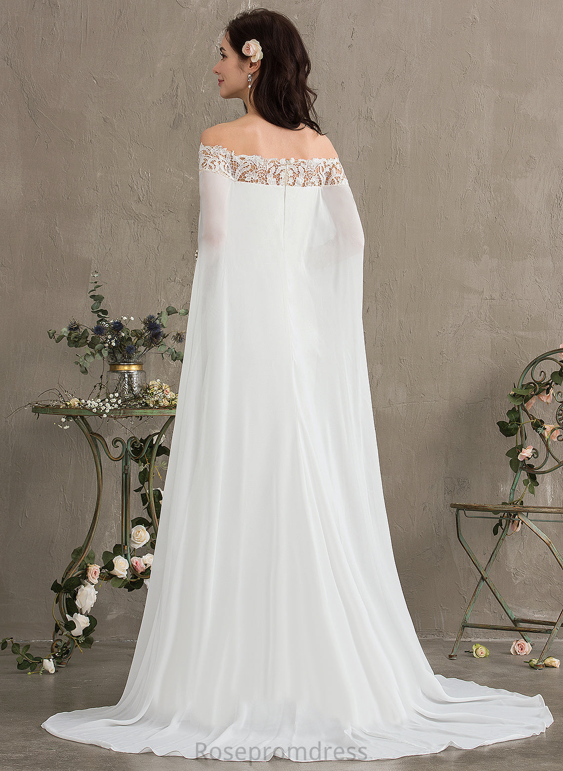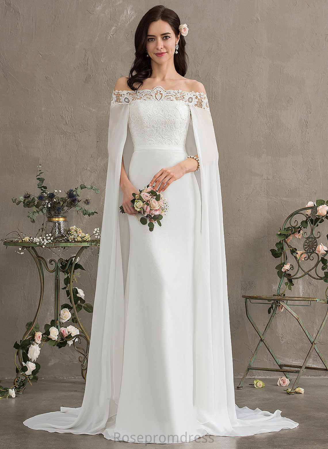 Dress Wedding Dresses Train Off-the-Shoulder Lace With Lace Wedding Court Val Sheath/Column Chiffon