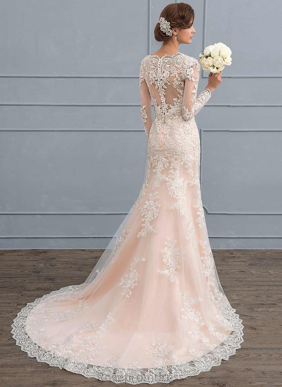 Dress Wedding Dresses V-neck Court Lace Trumpet/Mermaid Priscilla Train Wedding Tulle