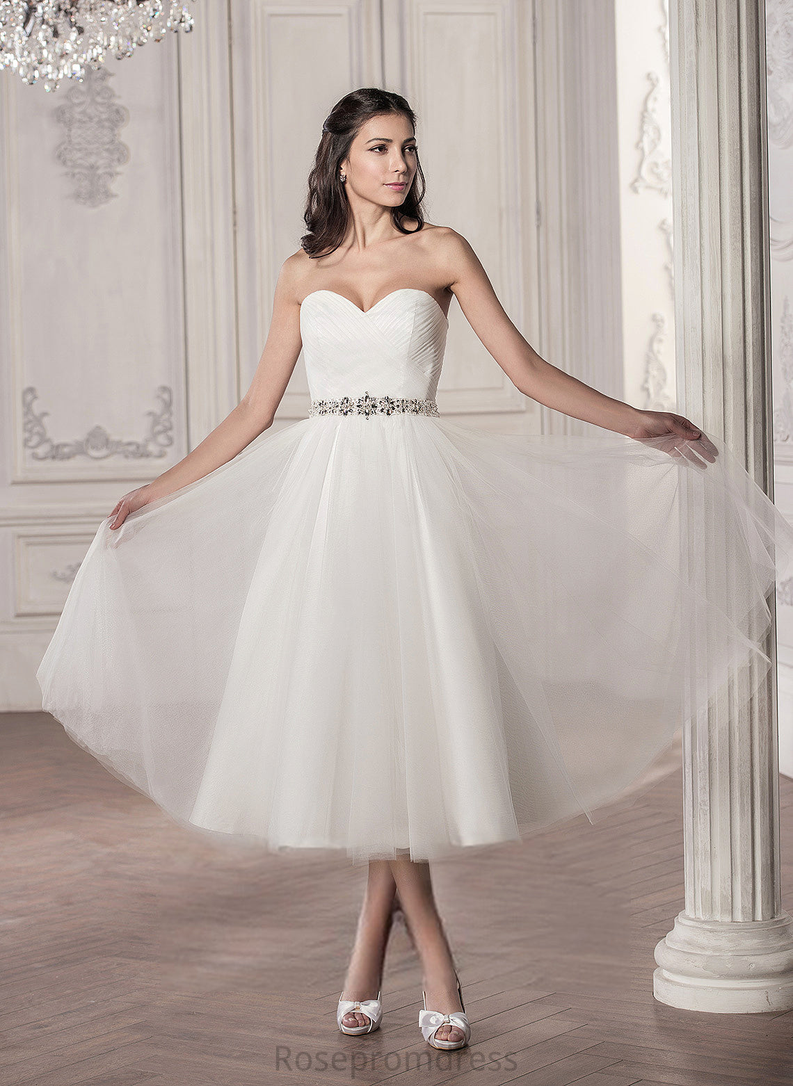 Dress With Sweetheart Sequins Wedding Dresses Beading Ruffle Tulle Wedding Tea-Length Satin A-Line America