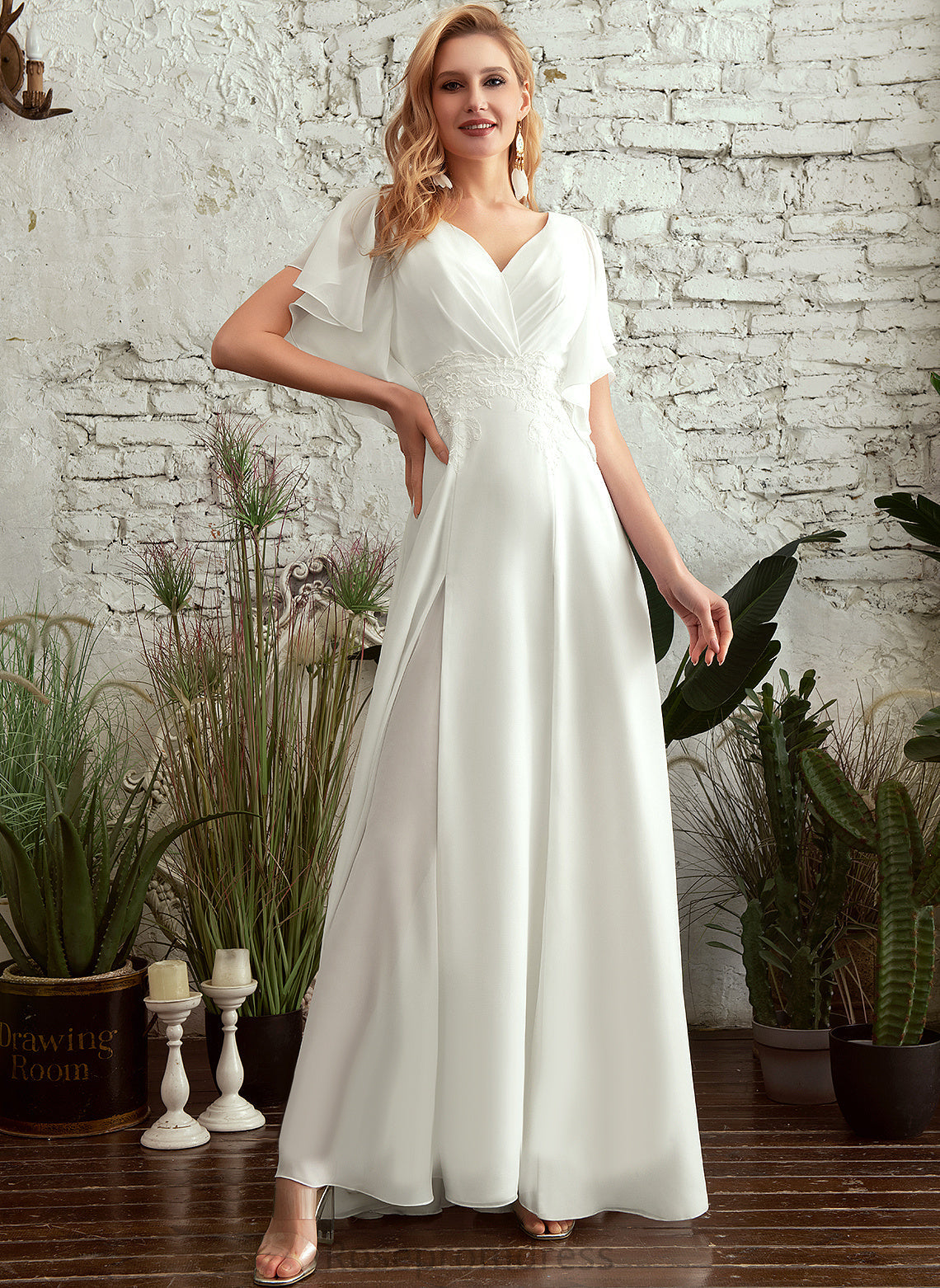 Eleanor Wedding Floor-Length Front Split V-neck Chiffon Dress Wedding Dresses A-Line Lace With