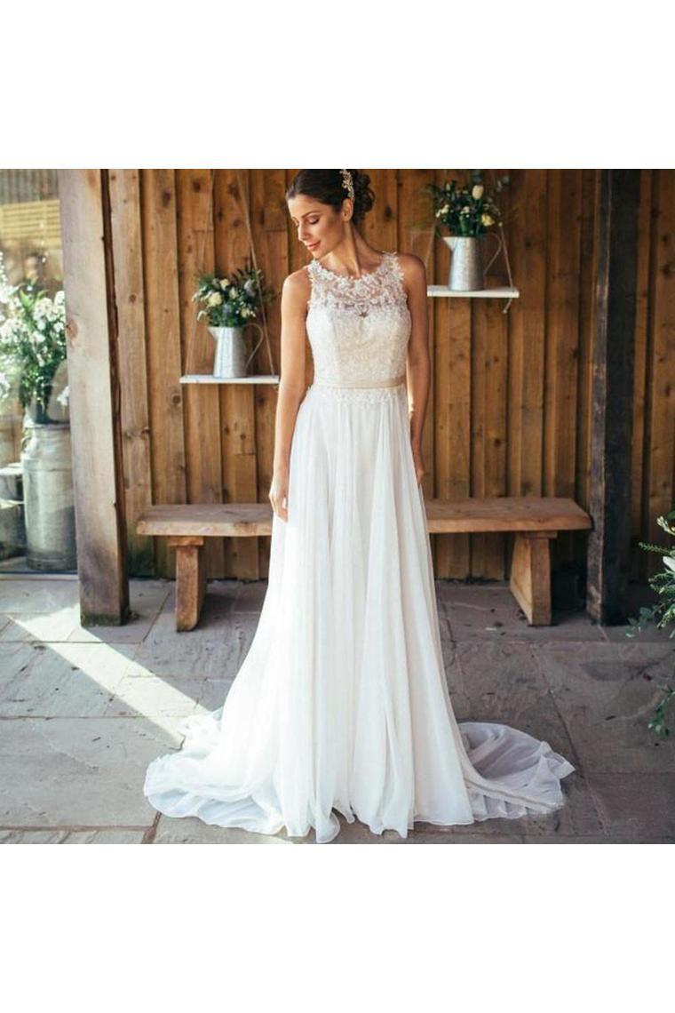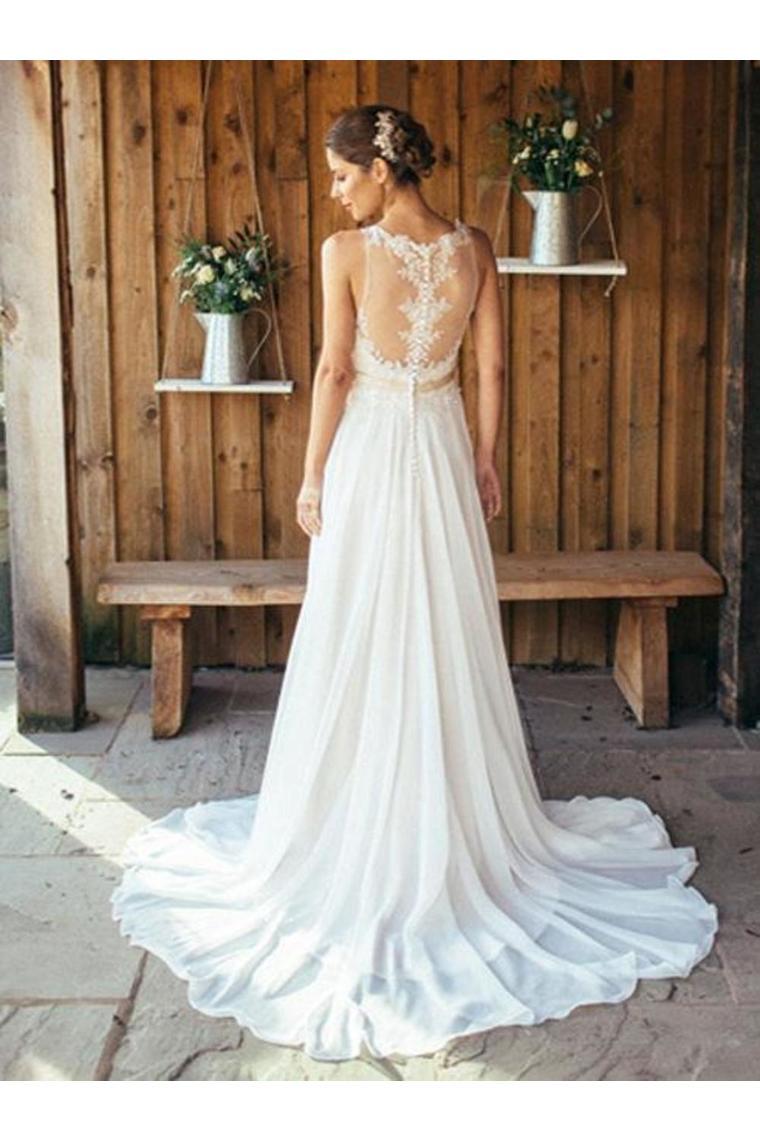 Elegant A-Line Round Neck Chiffon With Lace,Beach Boho Wedding Dresses