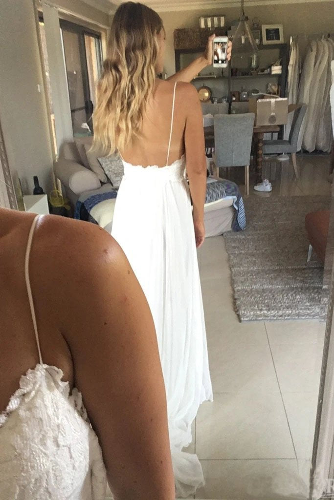 Elegant A Line Spaghetti Straps V Neck Top Lace Wedding Dresses, Bridal SRS20461
