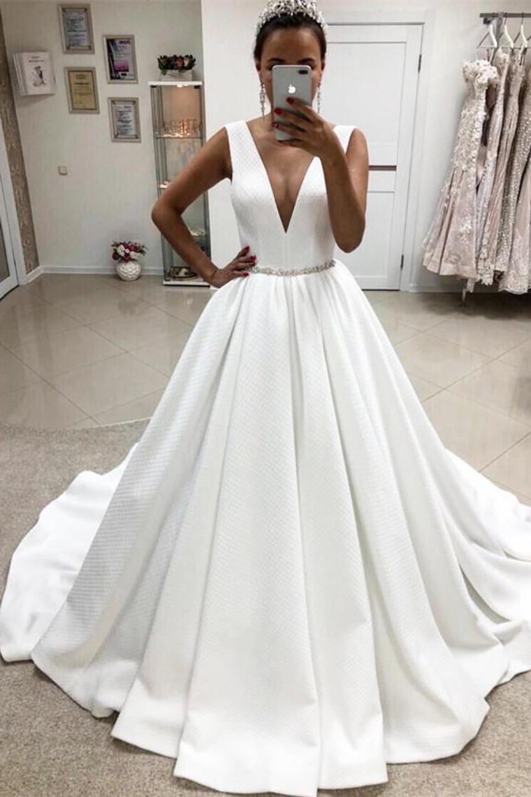 Elegant Deep V-Neck Simple Ball Gown Wedding Dresses Bridal Dresses